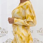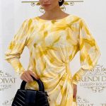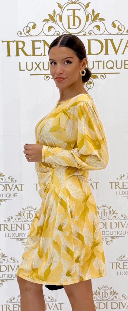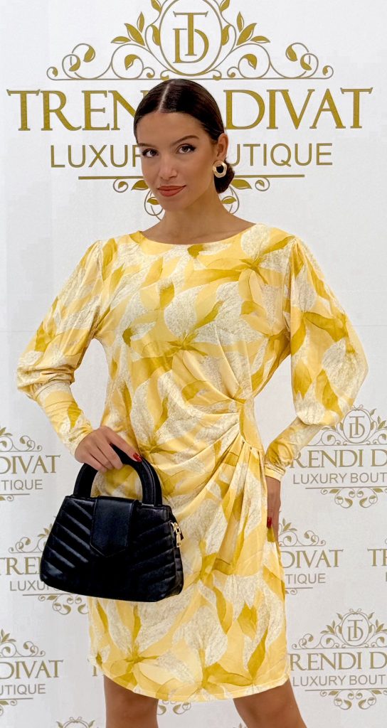 Be the first to review “A small dress with a cool silk effect, yellow flower pattern, pleated at the waist”