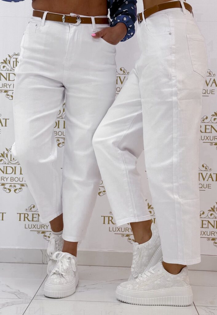 “Balloon fit” style white jeans with gift belt “SK525-12”