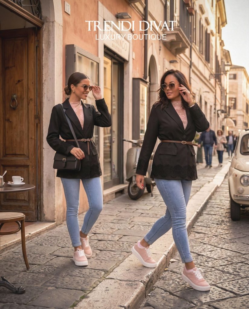 Be the first to review “Blazer with unique lace inserts, padded shoulders, gift belt”