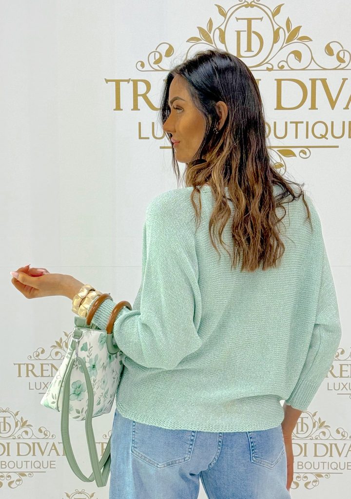 Be the first to review “Bow, short style, bat sleeve, lurex knit top”