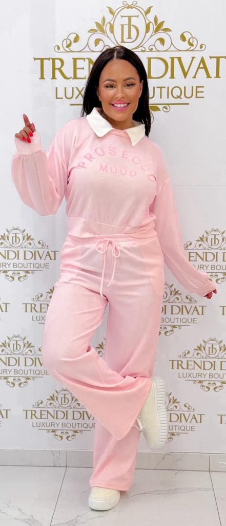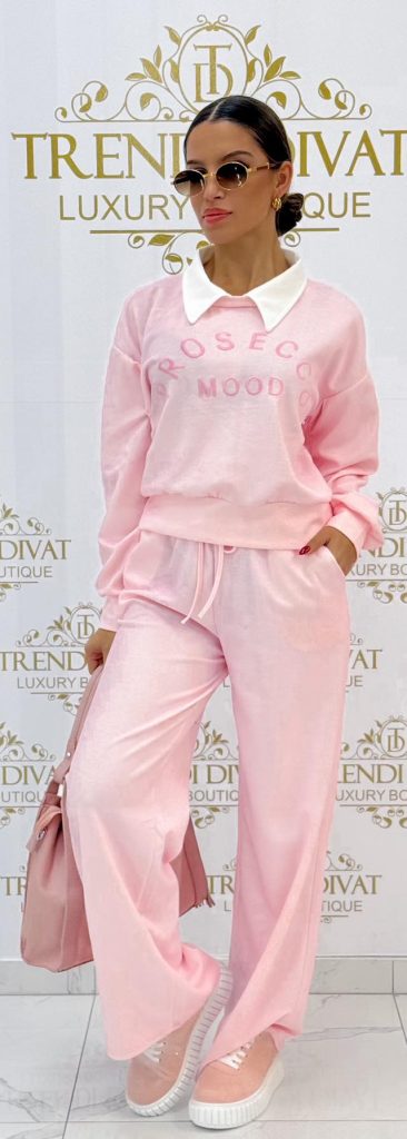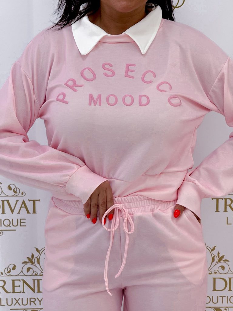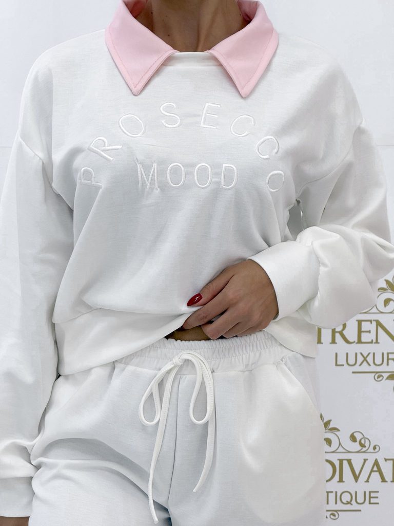 Collared, sporty set with “Prosecco” lettering