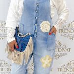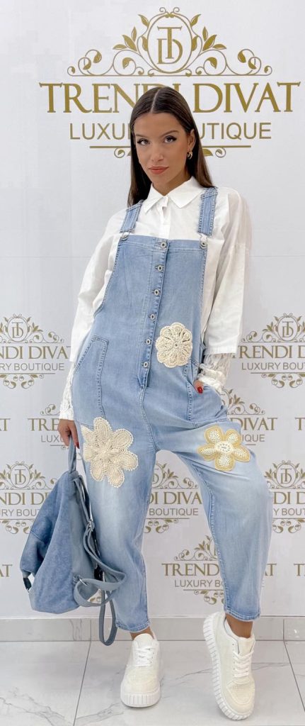 Be the first to review “Denim overalls decorated with crocheted flowers, bridle “SW2007””