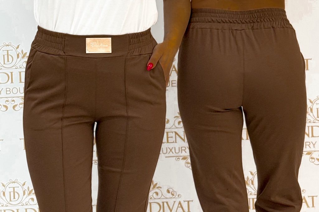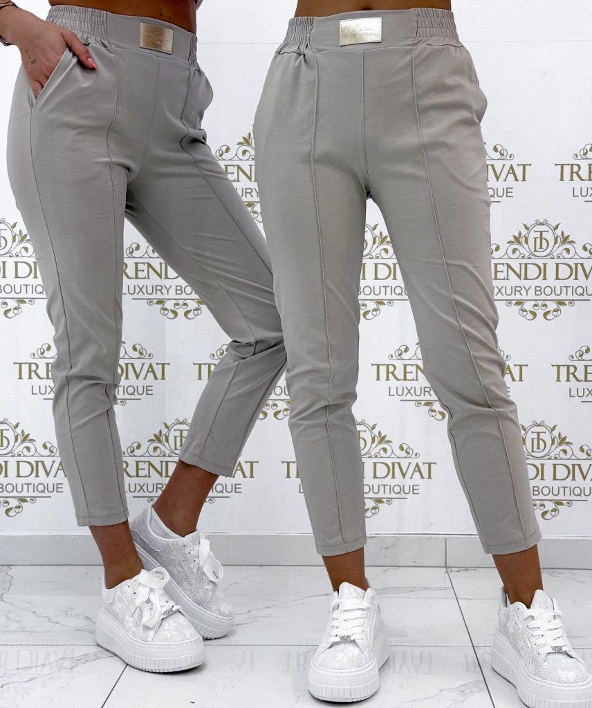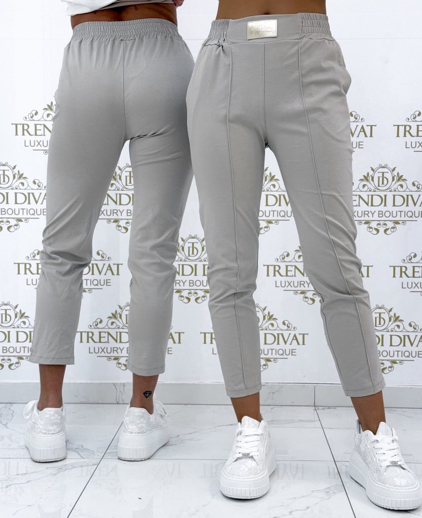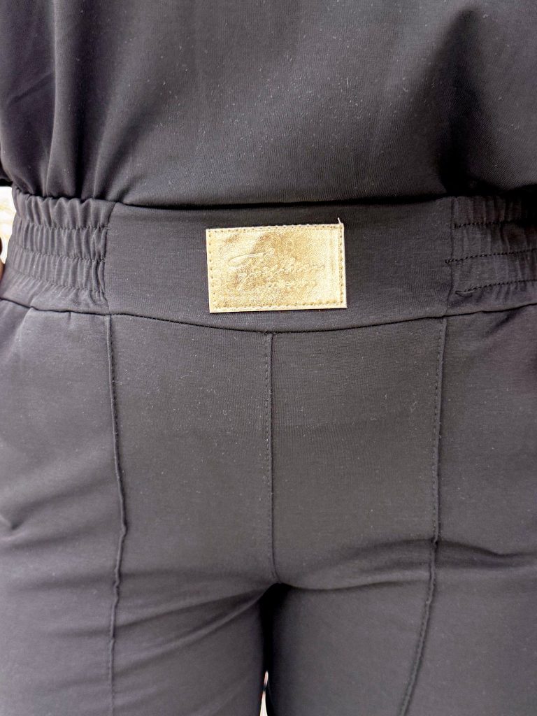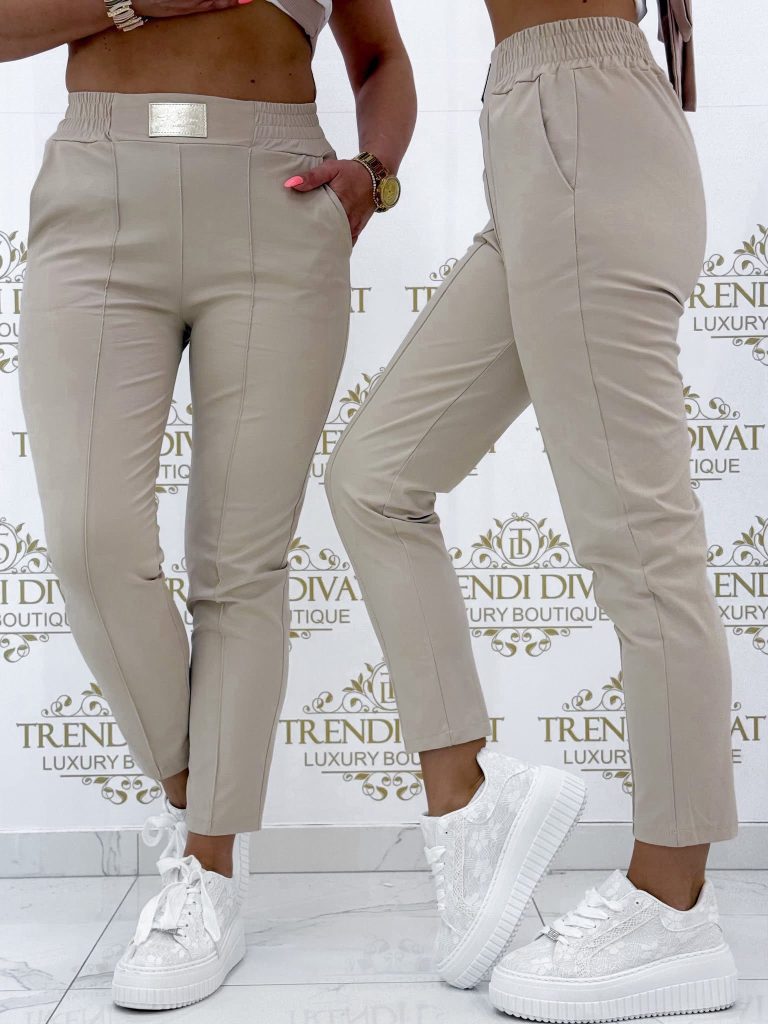 Be the first to review “Elastic canvas material trousers with gold-colored billet, elasticated waist, sewn edges”