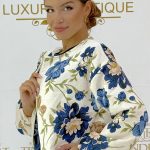 Be the first to review “Elegant floral women’s zip-up jacket with a blue-brown pattern”
