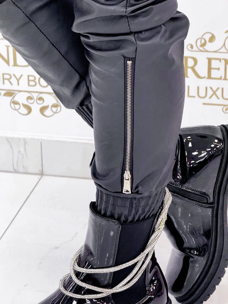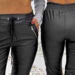Be the first to review “Faux leather pants with an elastic waist, zipper on the legs and pockets”