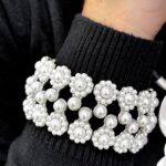 Be the first to review “Floral rubber bracelet studded with small pearls”