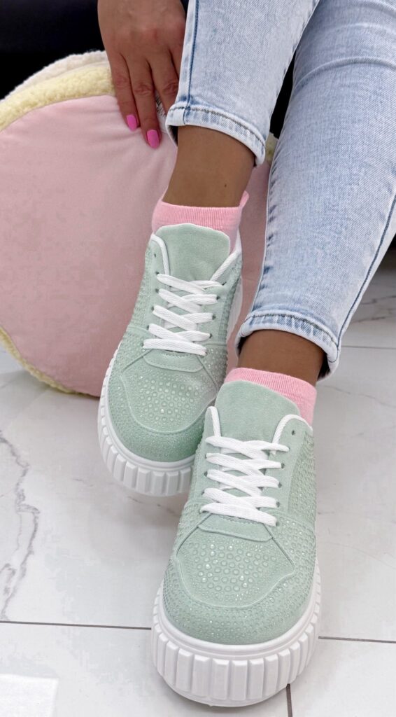 Be the first to review “Green sports shoes decorated with transparent stones”