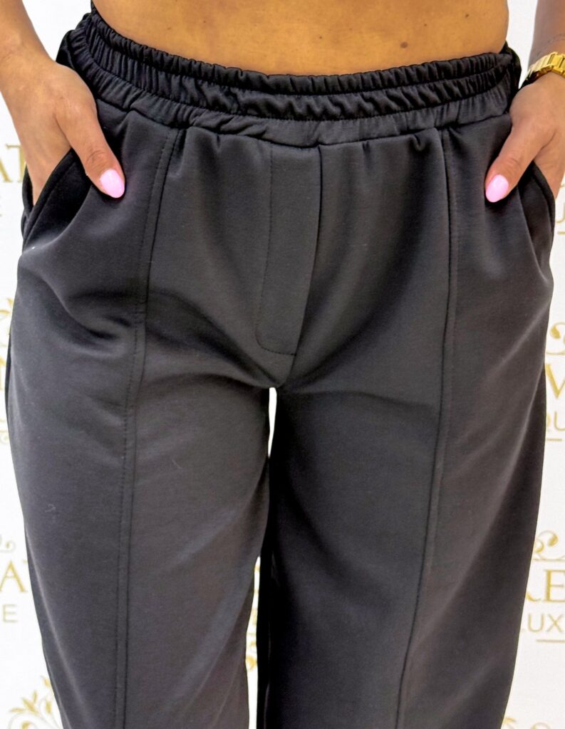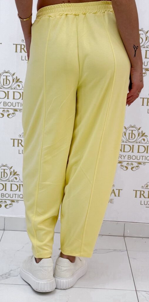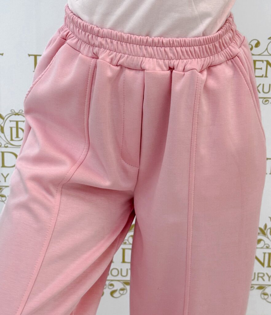 “Jasmine” pants with rubber waist, soft material, sewn on the edge
