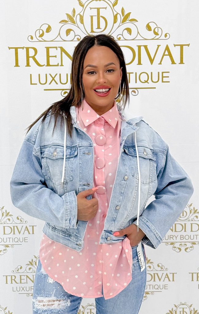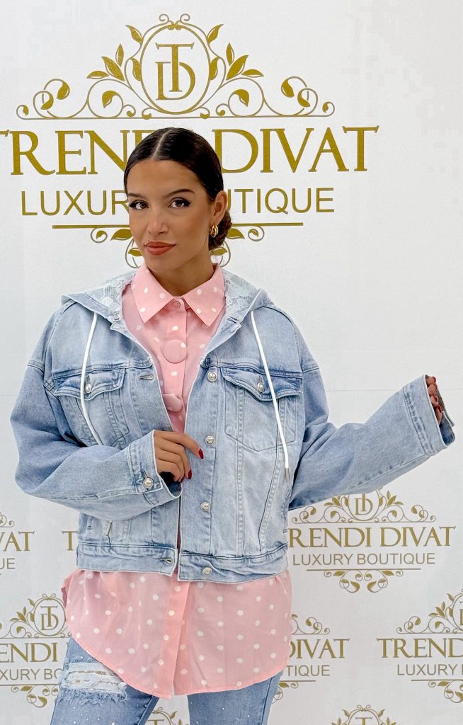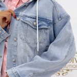 Be the first to review “Lace insert hooded, loose fit denim jacket “A2506-5””
