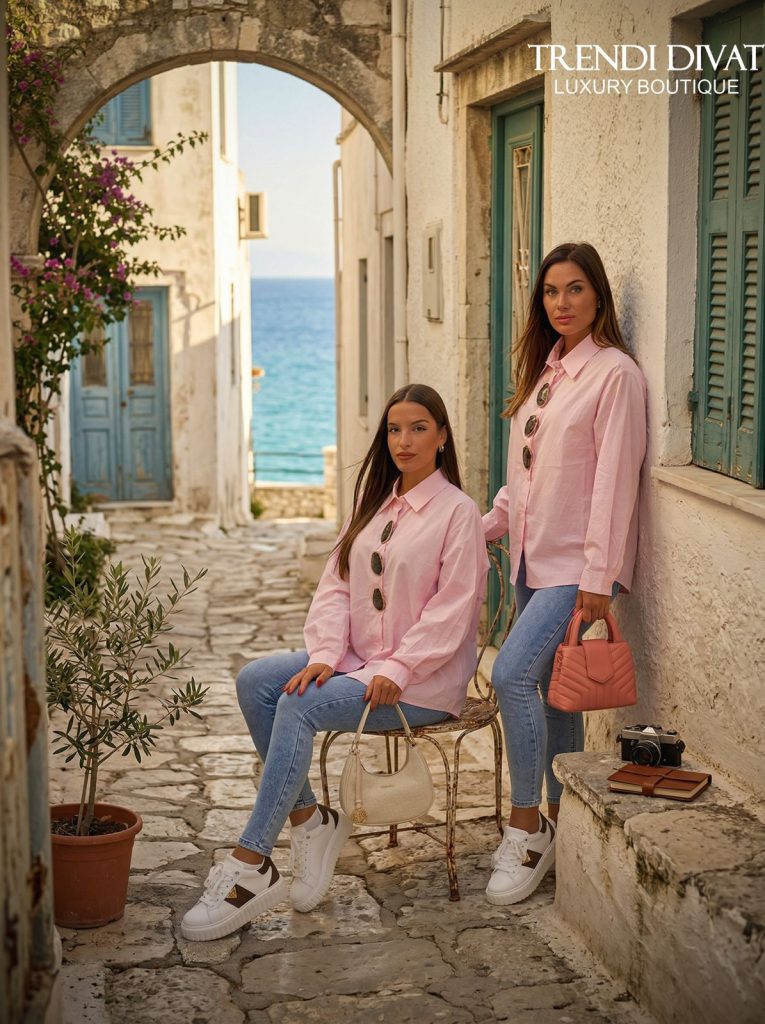 Be the first to review “Large marble-patterned jewel-embellished, all-button blouse “MC K1302””