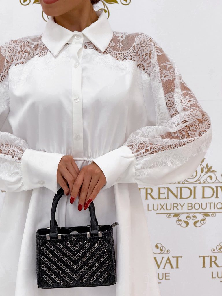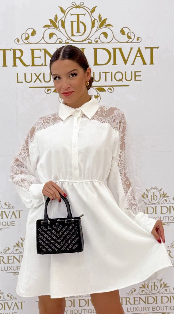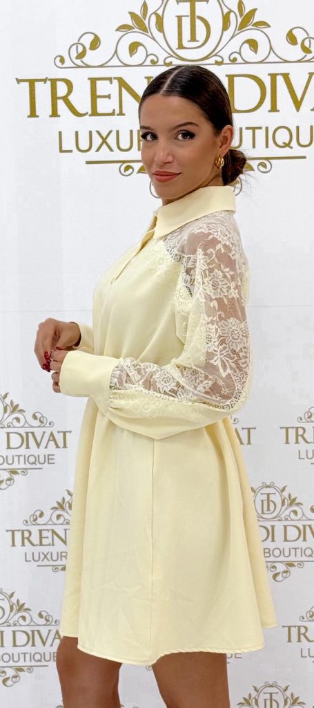 Be the first to review “Little shirt dress with lace inserts, elastic under the bust, buttons”