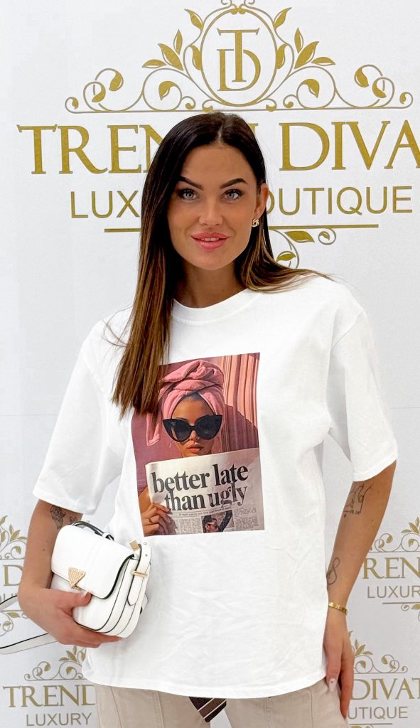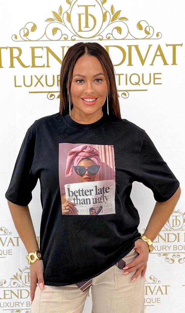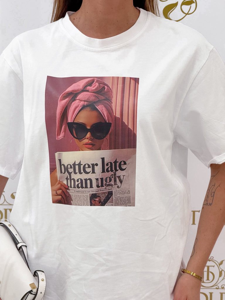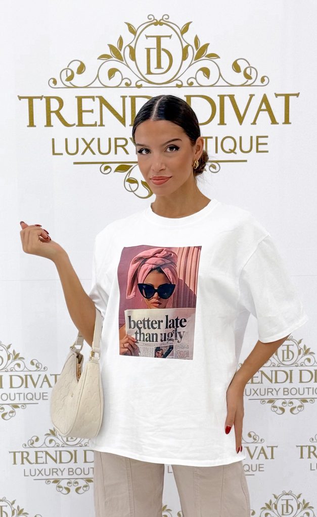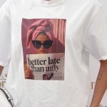 Be the first to review “Loose fit t-shirt with a female pattern reading a newspaper”