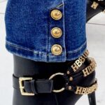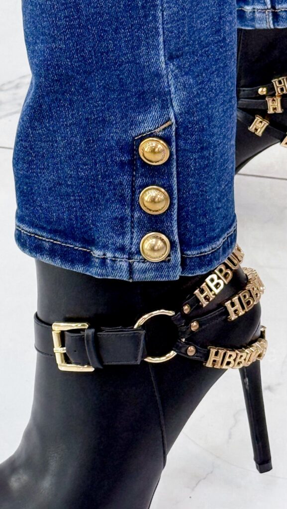 Mid-waist jeans decorated with golden buttons on the leg, with a gift belt “SZ3221-2”
