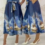 Be the first to review “Midi skirt with a painting-like cityscape pattern”