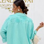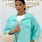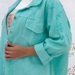Be the first to review “Mint-colored denim jacket with a flower pattern on the top, loose fit”