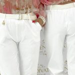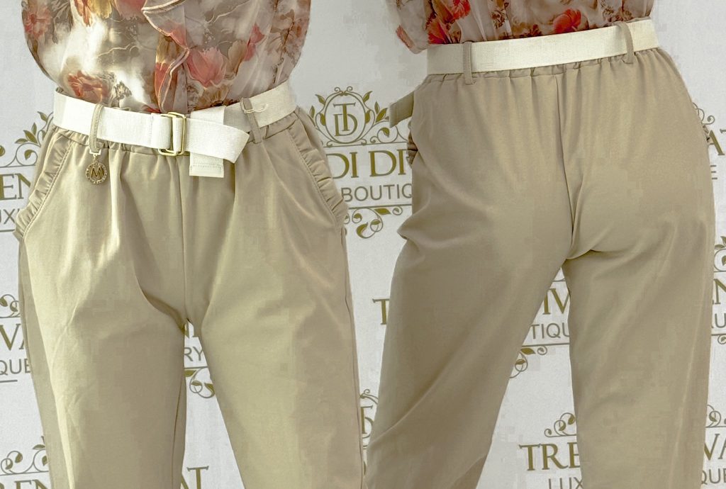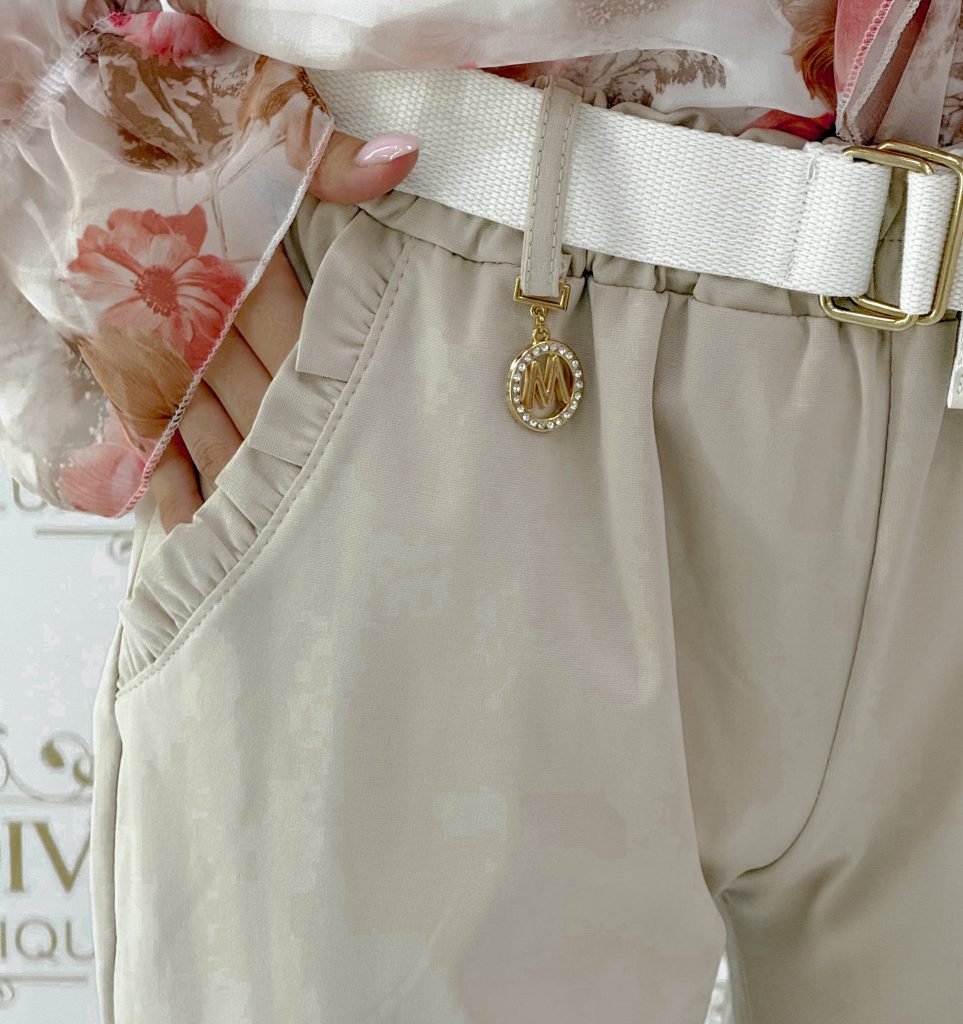 Be the first to review “Pants made of elastic canvas material with frills at the pockets, elastic waist, gift belt”