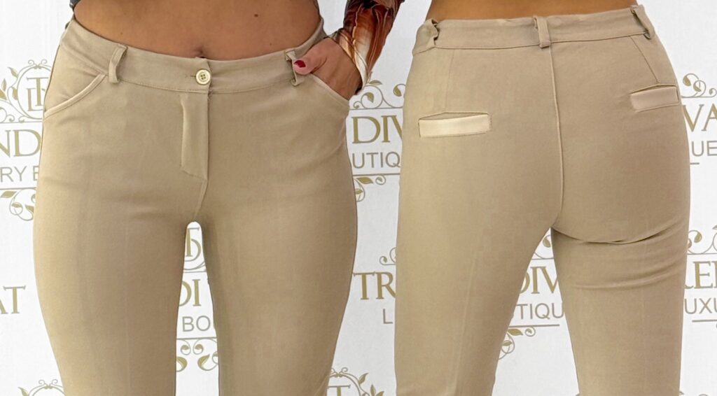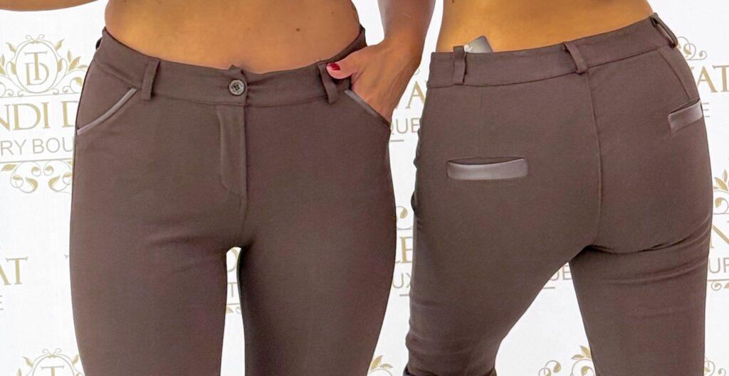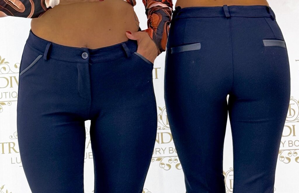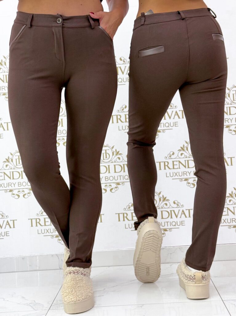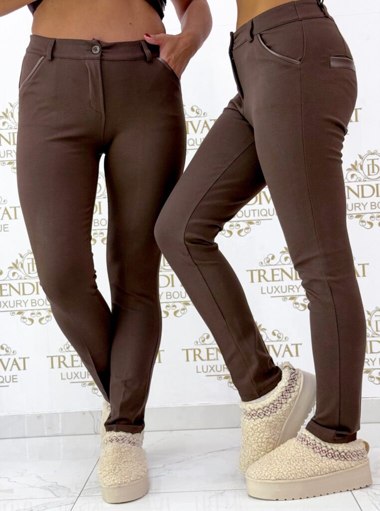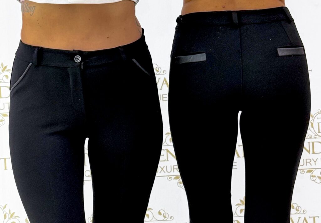 Be the first to review “Pants with faux leather inserts on the pockets, ironed edges”