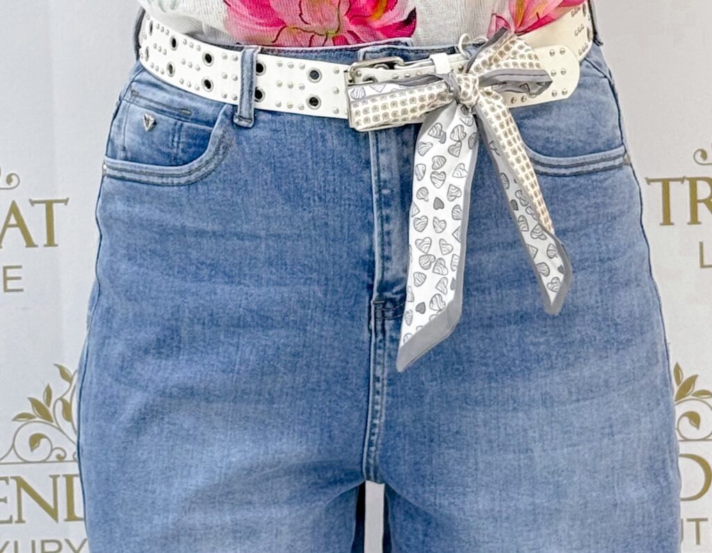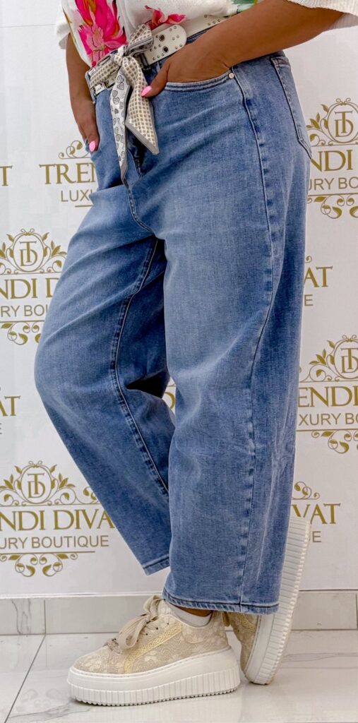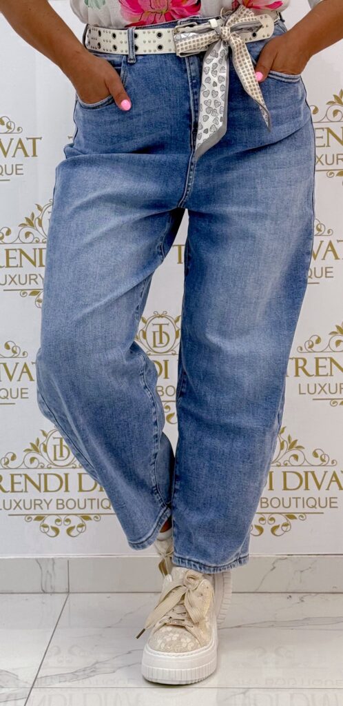 Plus size, “Baggy fit” style, medium blue jeans, with free studded belt “BM132-4B”