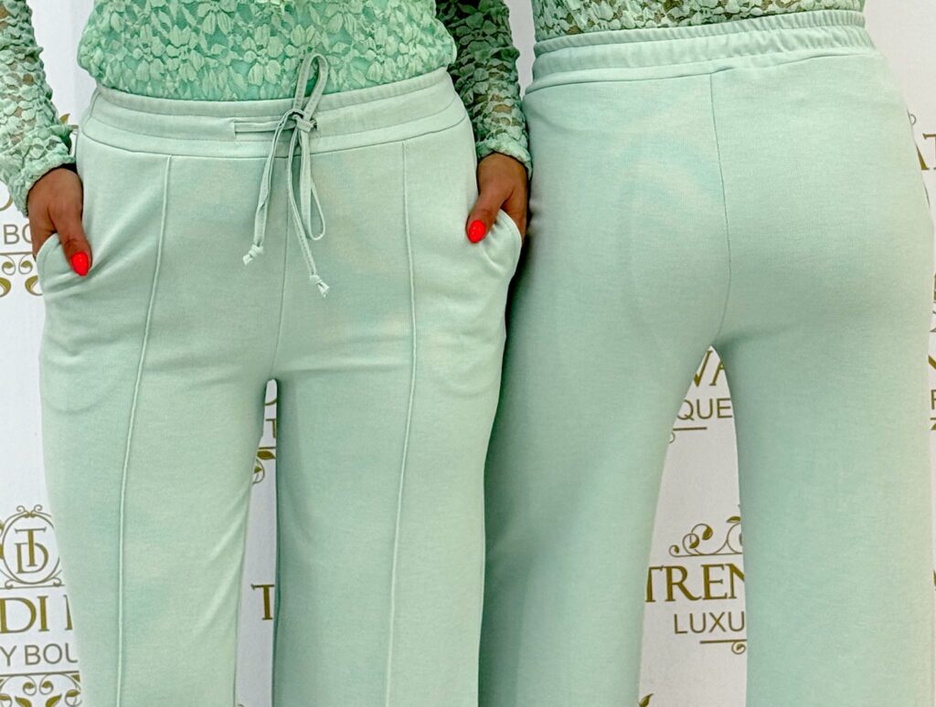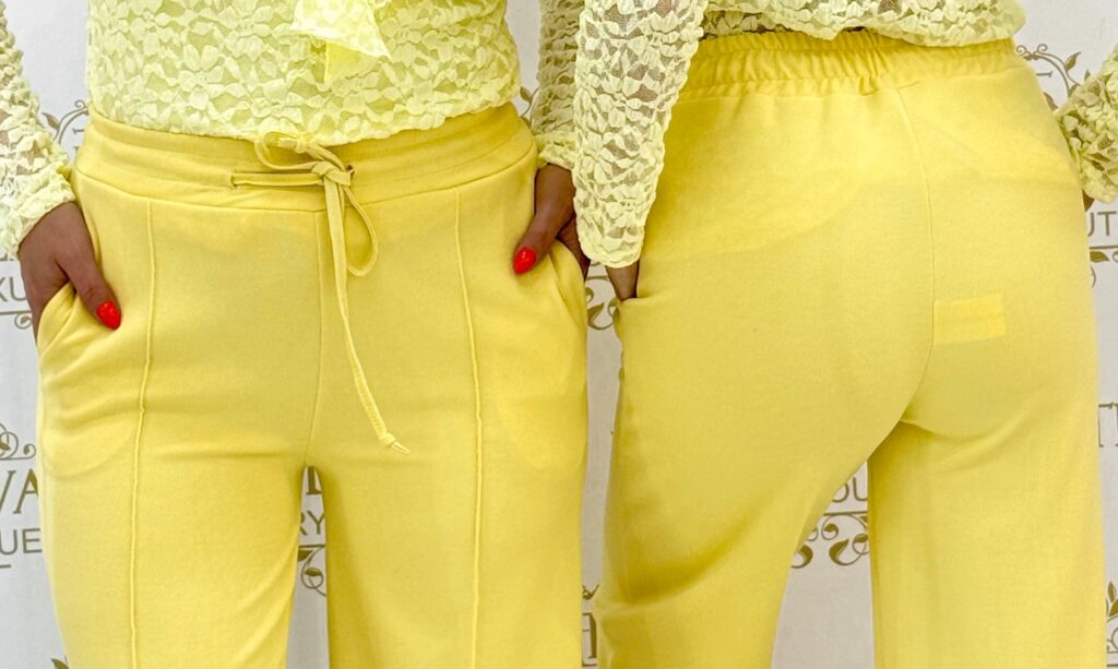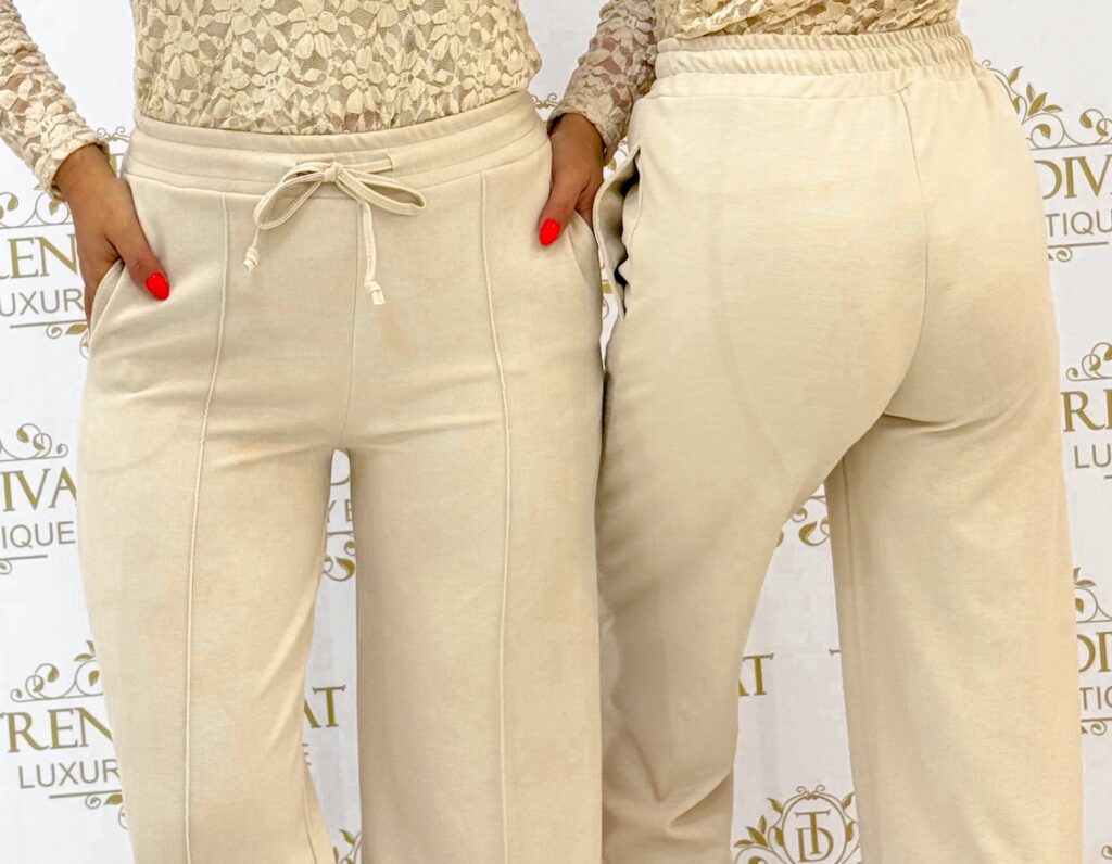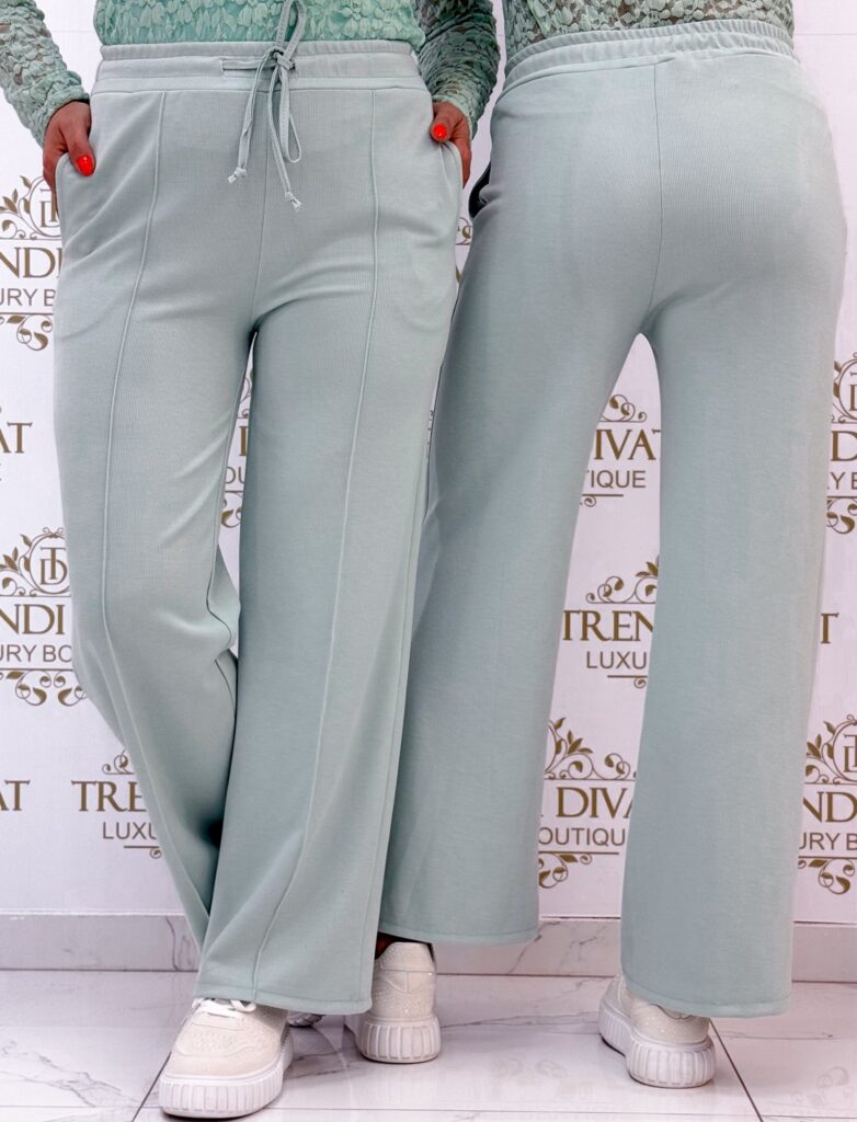 Be the first to review “Ribbed palazzo trousers with edge stitching, elasticated waist”