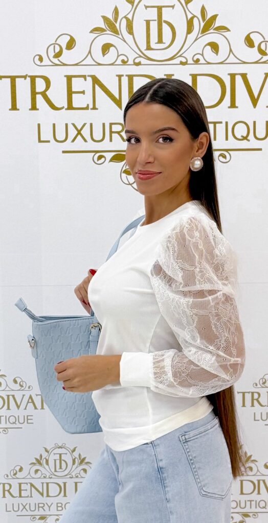 Be the first to review “Ribbed top with a round neck, lace sleeves, puffy shoulders”
