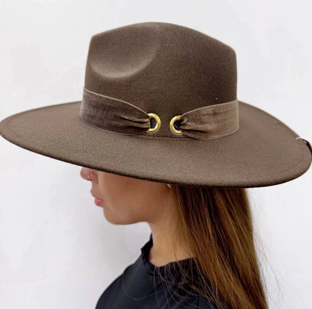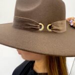 Be the first to review “Ribbon-decorated, gold-colored fabric hat”