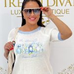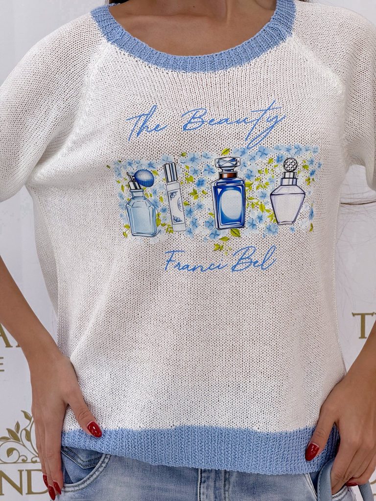 Be the first to review “Short-sleeved top with perfume pattern, knitted material”