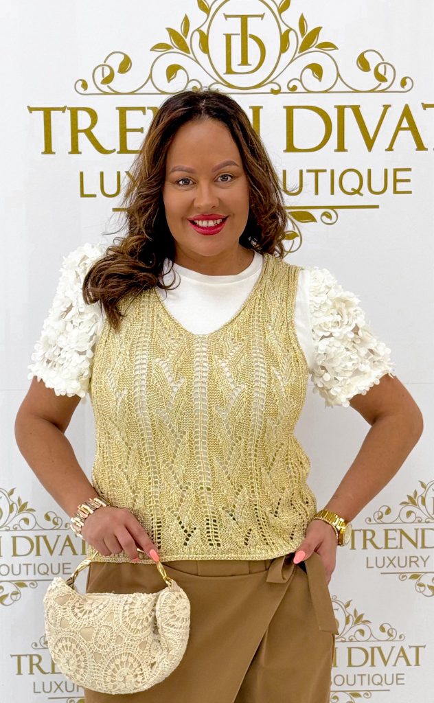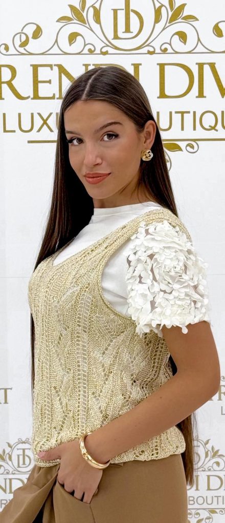 Be the first to review “Sleeveless, holey, lurex fiber top”