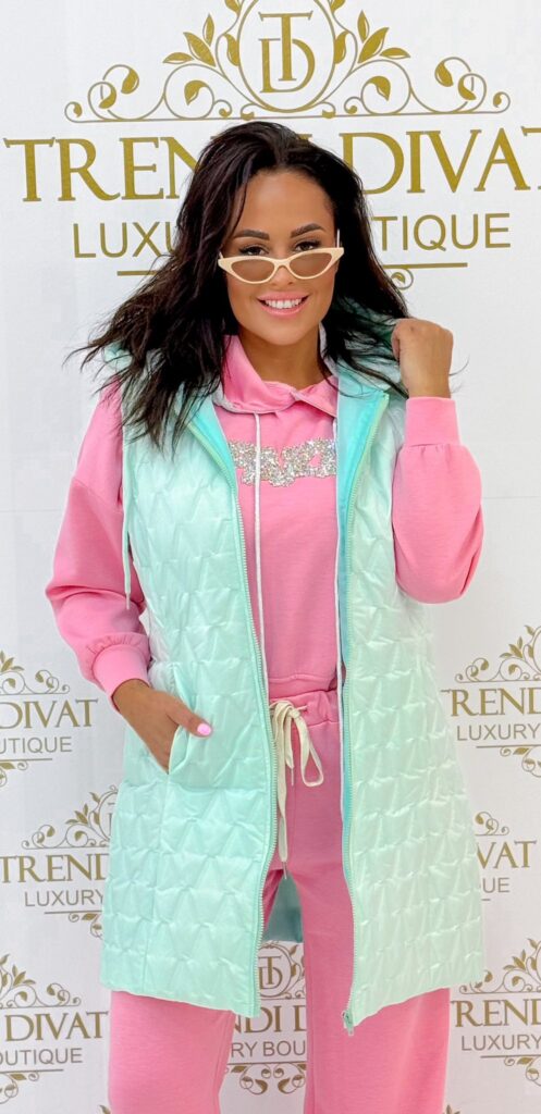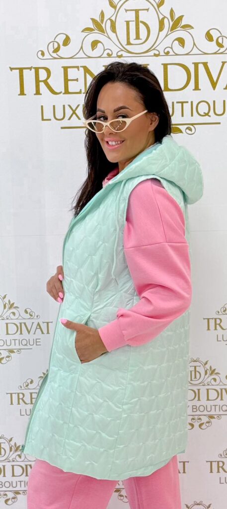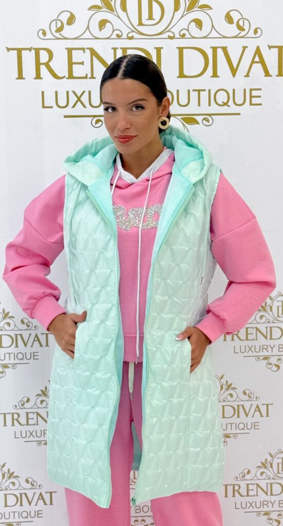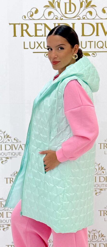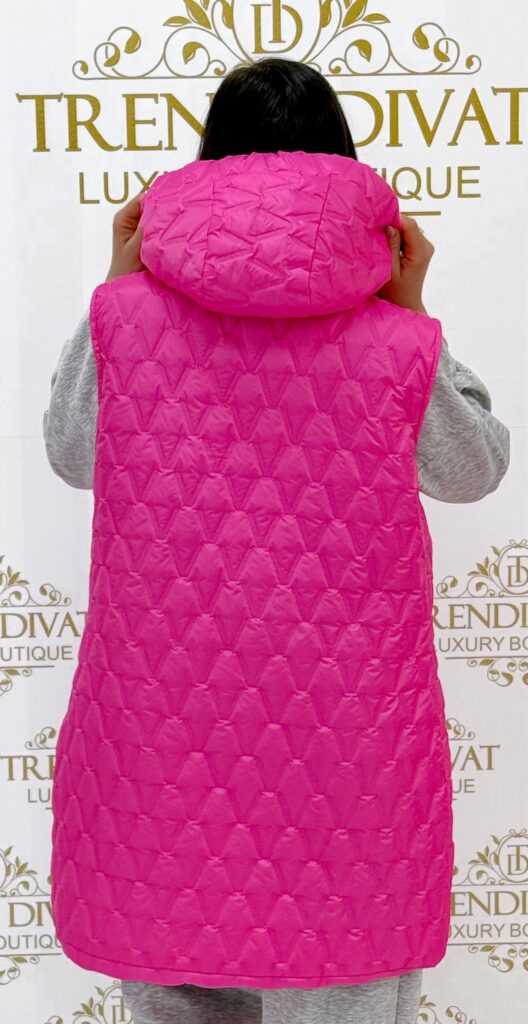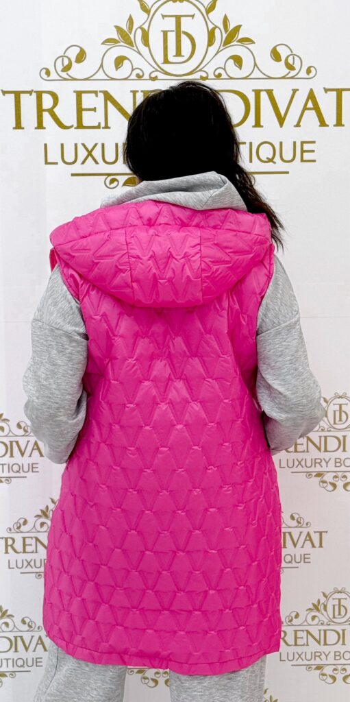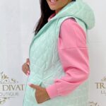 Be the first to review “Small hooded, elongated style, quilted, zippered vest”