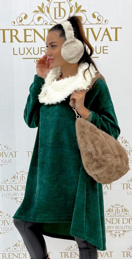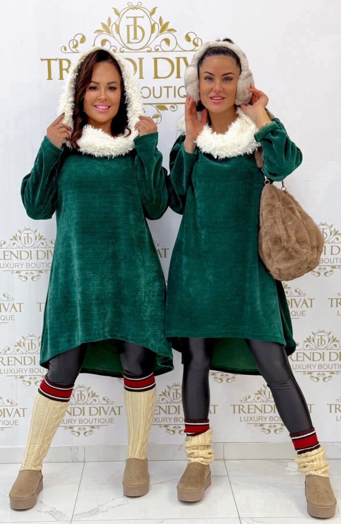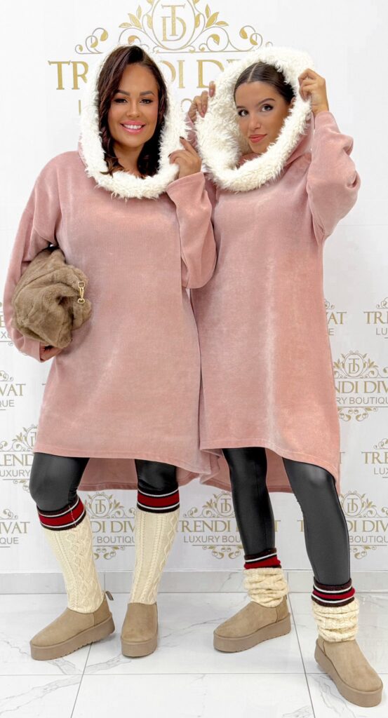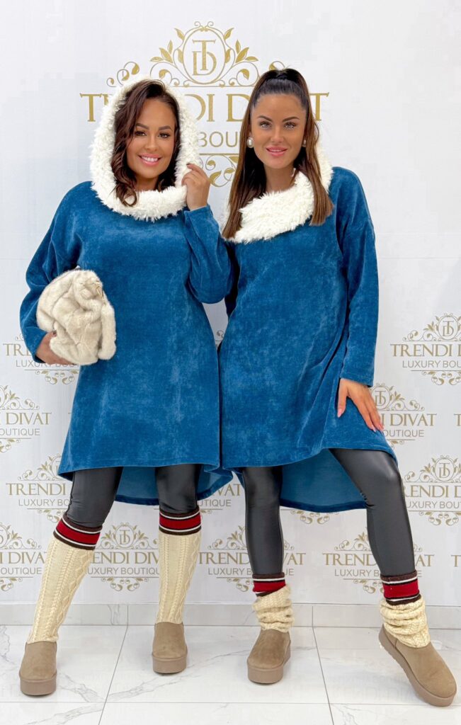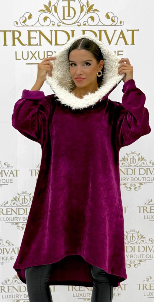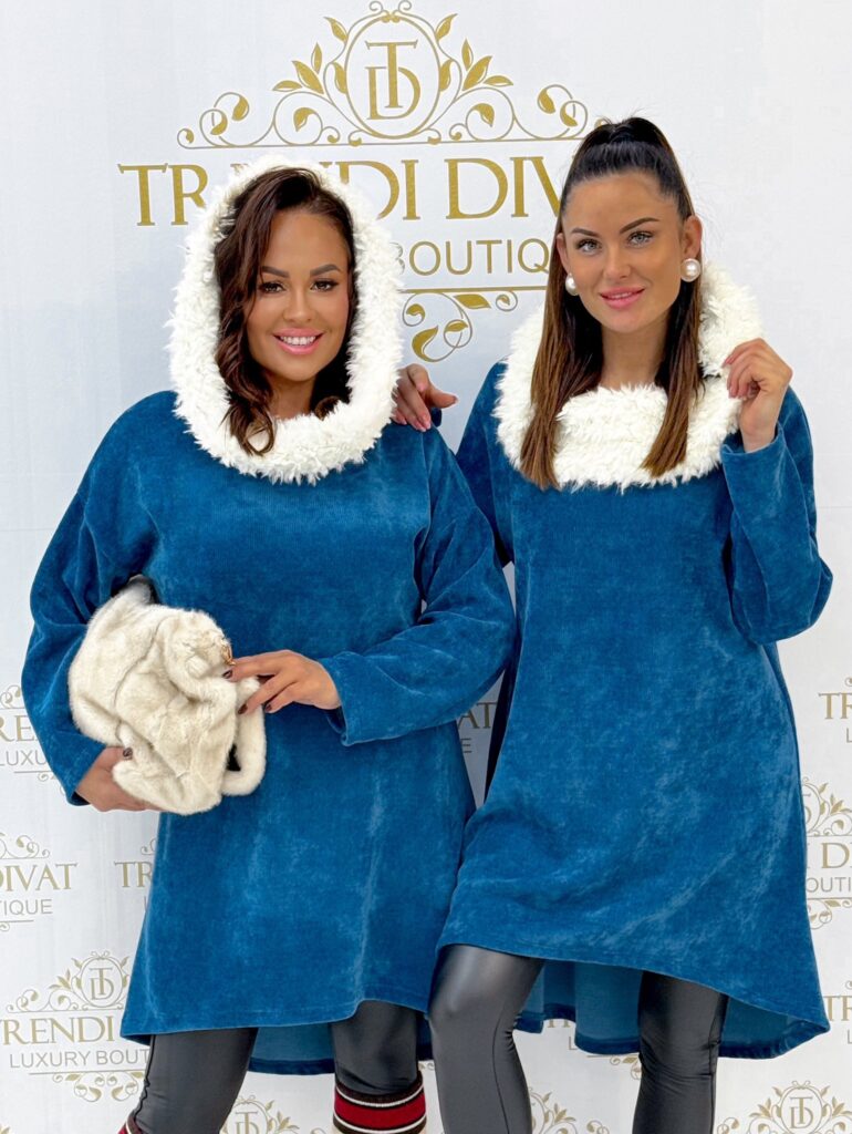 Be the first to review “Soft fur hooded tunic with corduroy effect, shorter in front”
