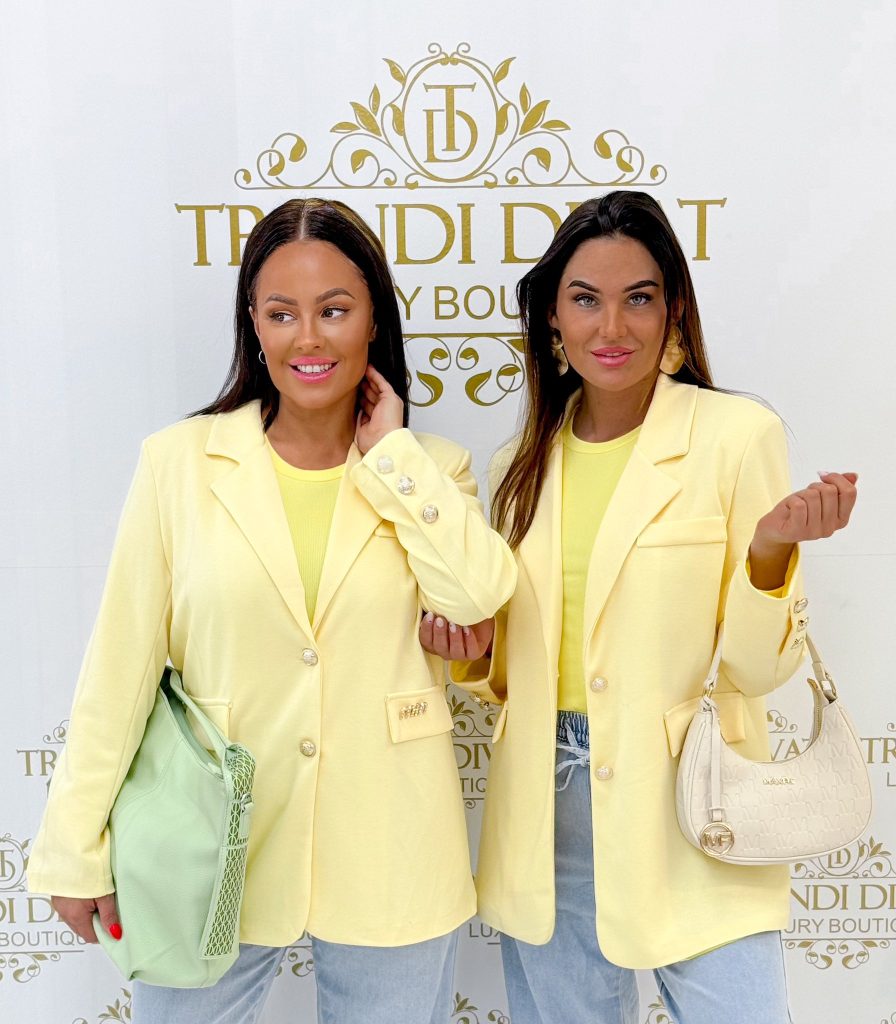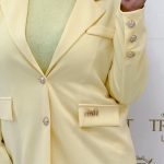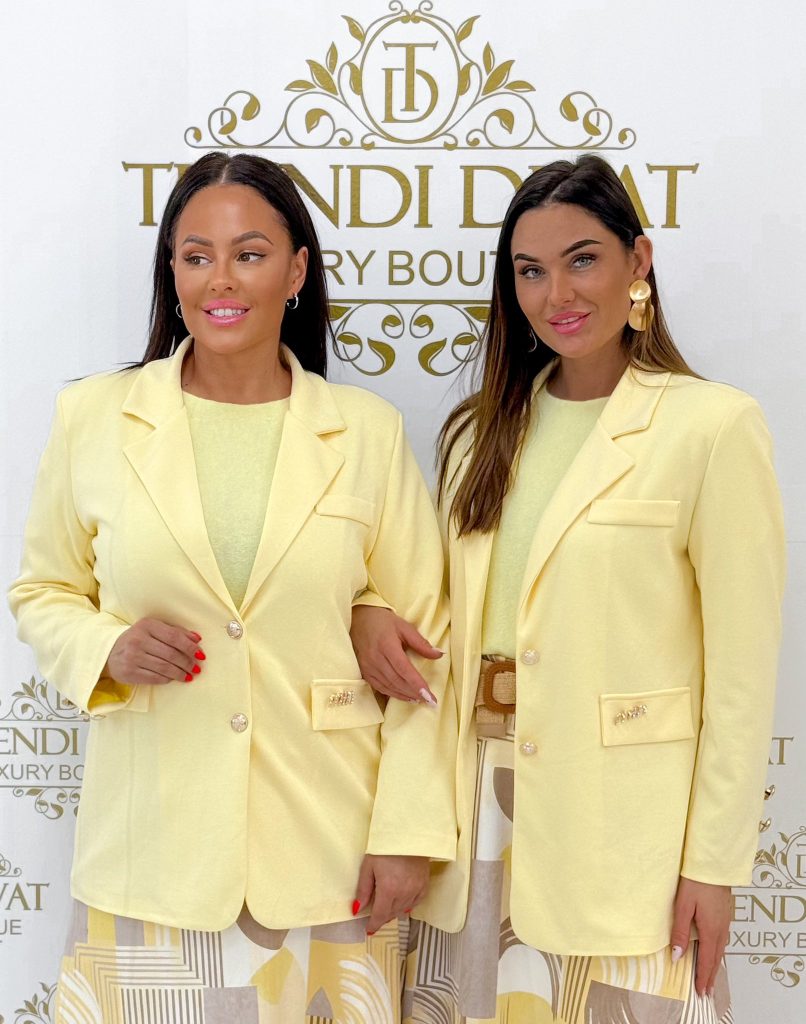 Be the first to review “Soft material, decorated with gold-colored buttons, padded shoulder blazer, with a gift brooch”