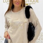 Be the first to review “Soft material top with golden lettering”