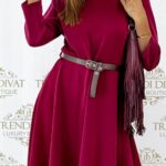 Soft material, zip-up midi dress with a gift belt