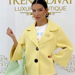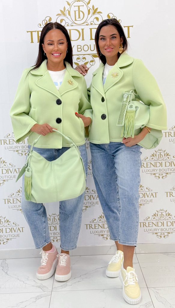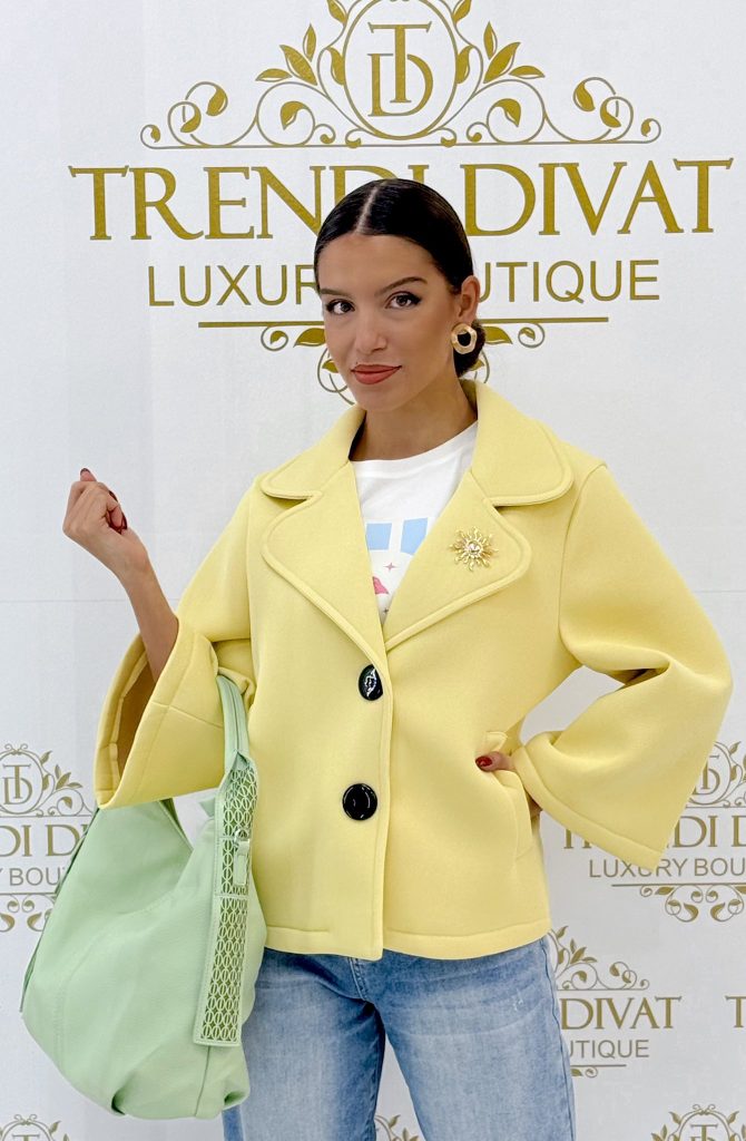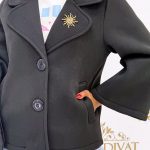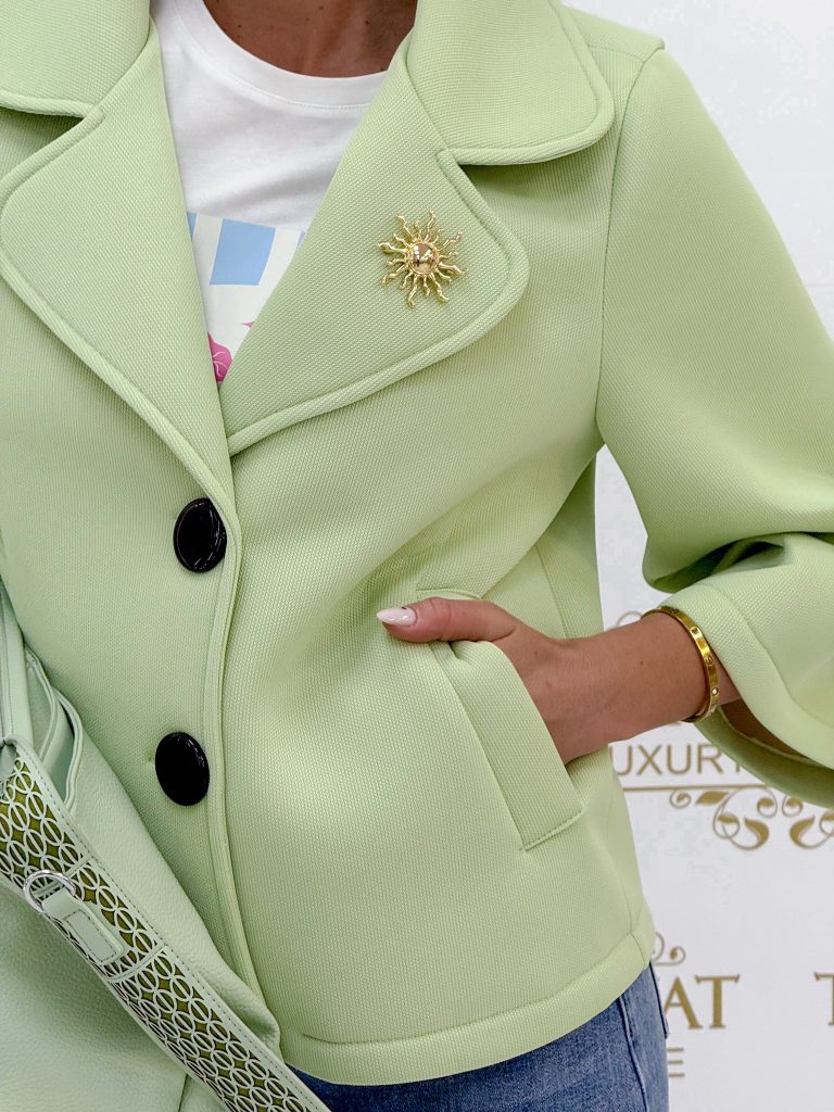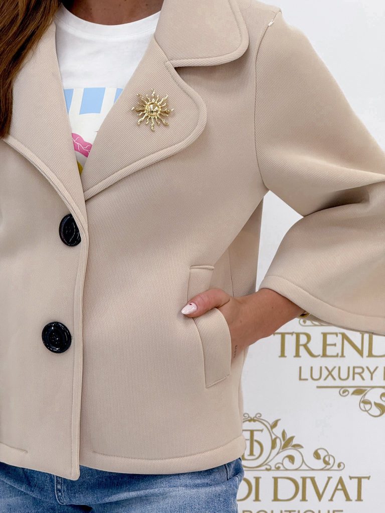 Be the first to review “Spring jacket with collar, short style, neoprene style, gift brooch”