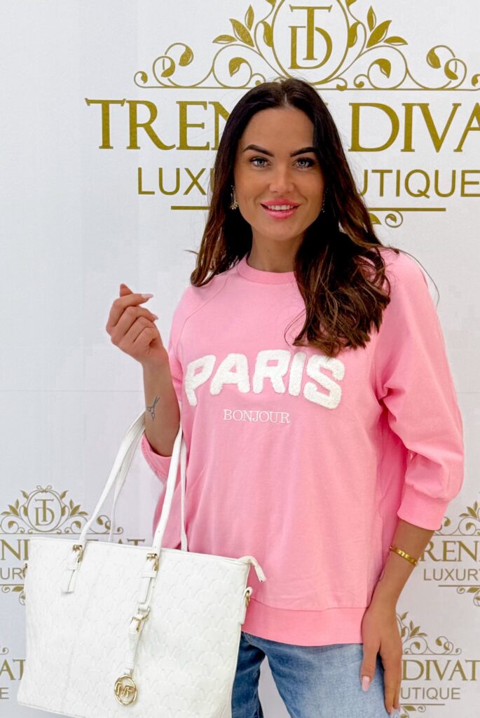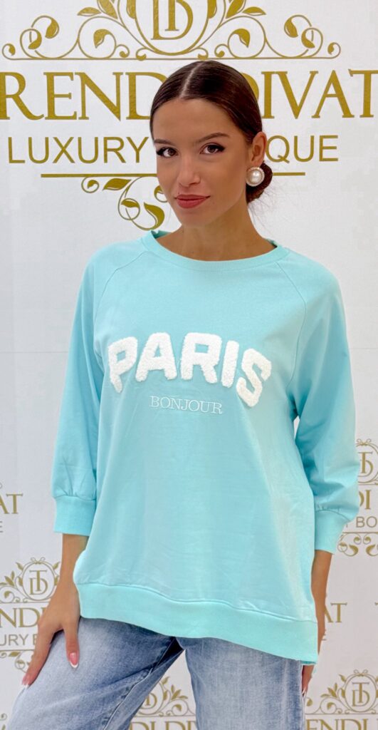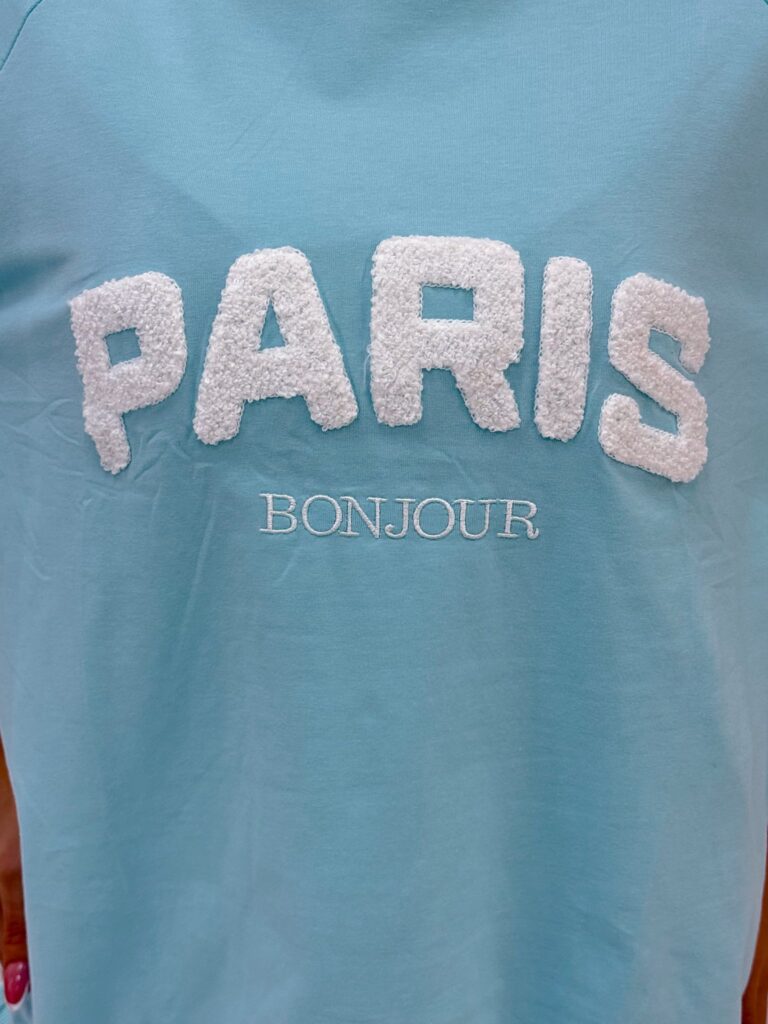 Sweater with the inscription “Paris”, slits on the side