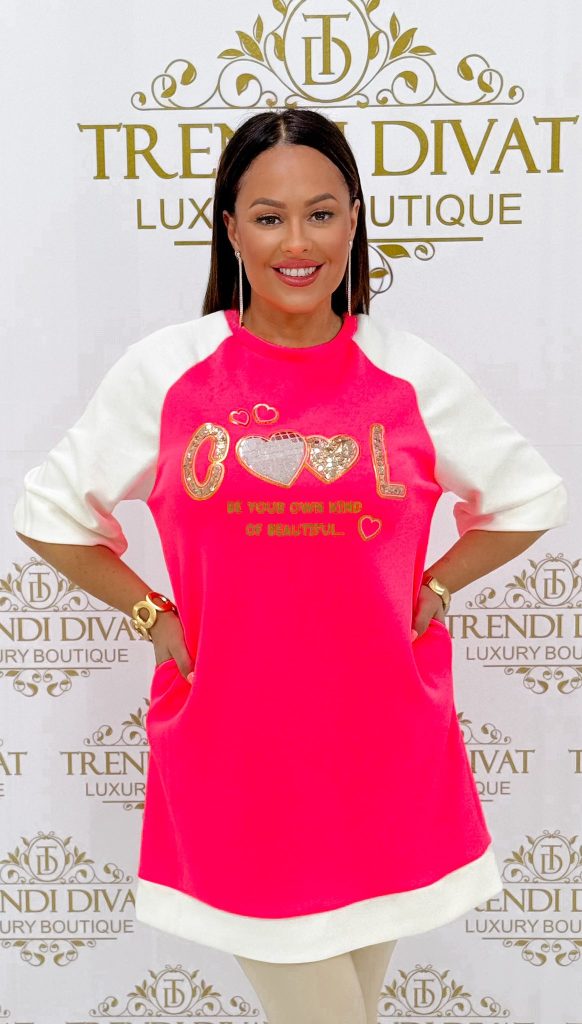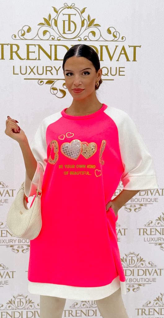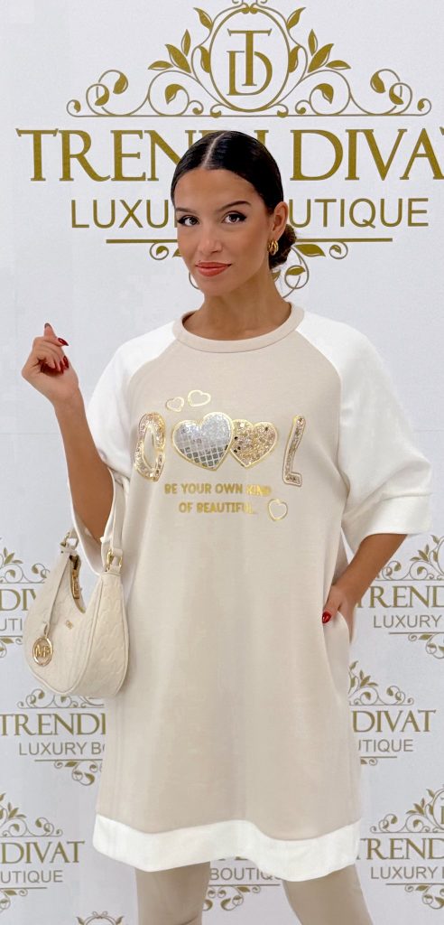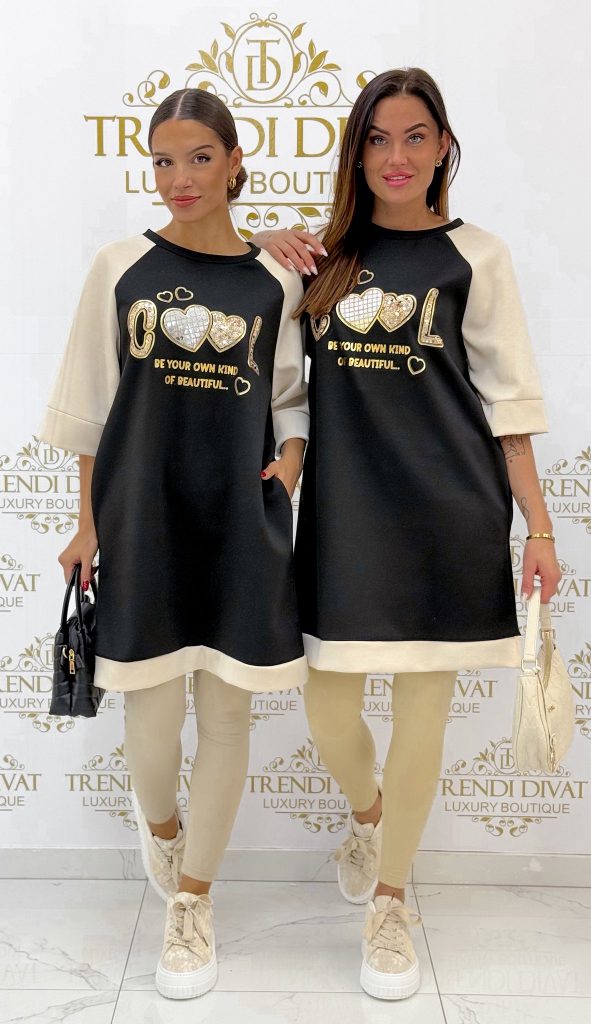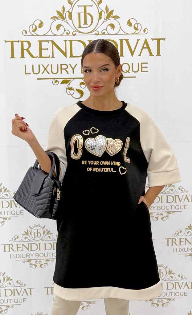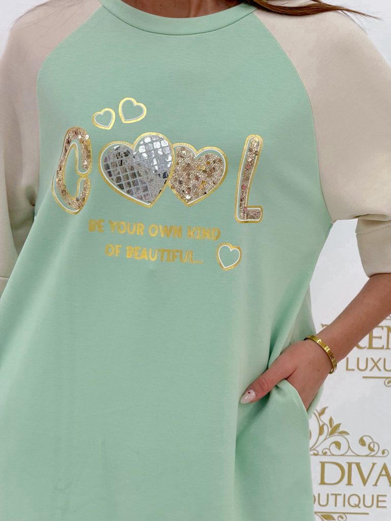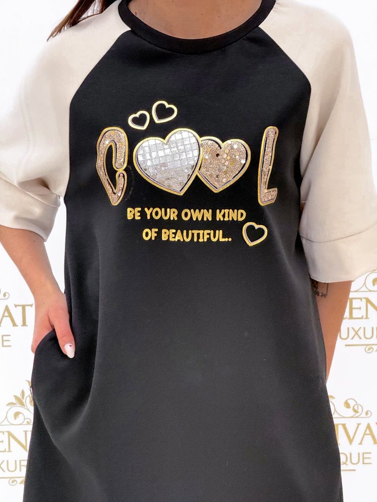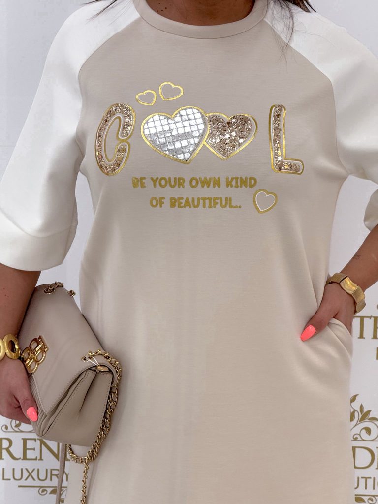 Be the first to review “T-shirt dress with “COOL” lettering with sequin inserts and pockets”