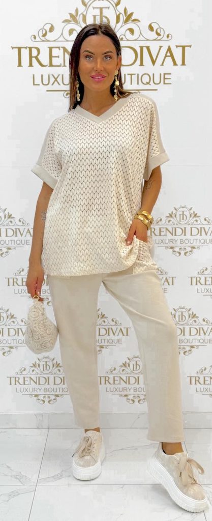 Be the first to review “V-neck knitted set with hole pattern”