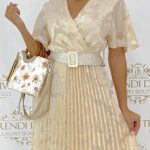 Be the first to review “V-neck pleated casual midi dress with belt”