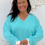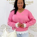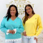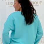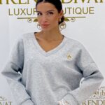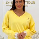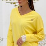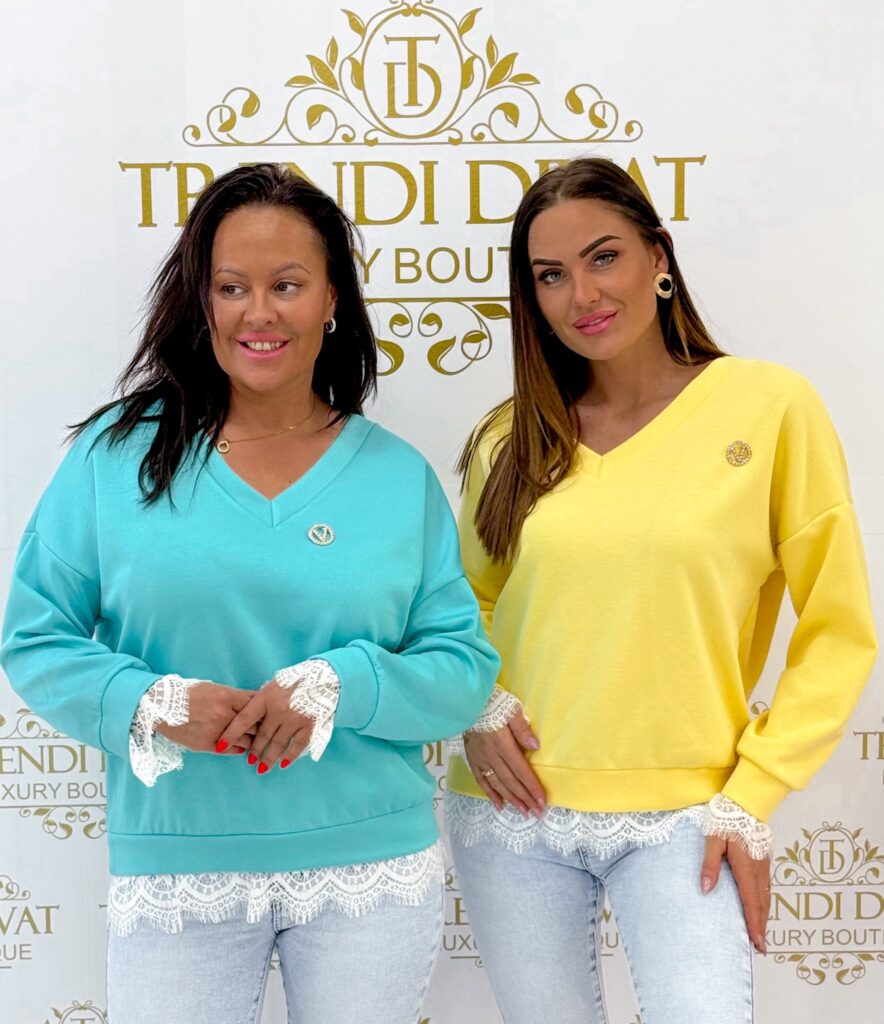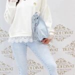 Be the first to review “V-neck sweater with lace inserts, decorated with a stone brooch”