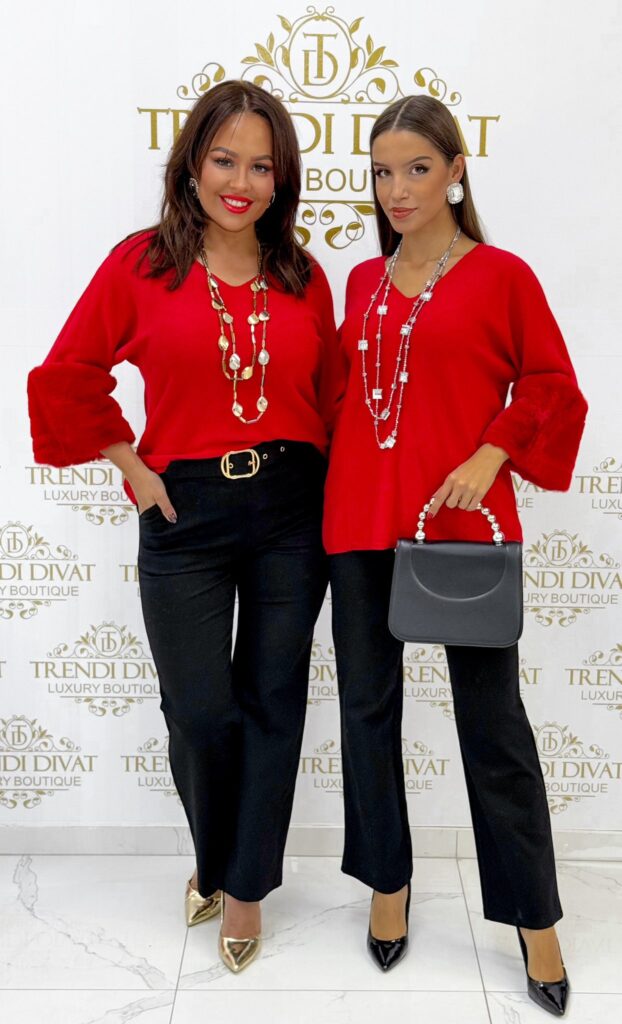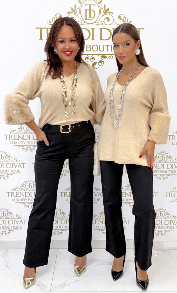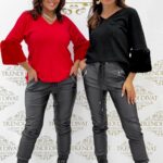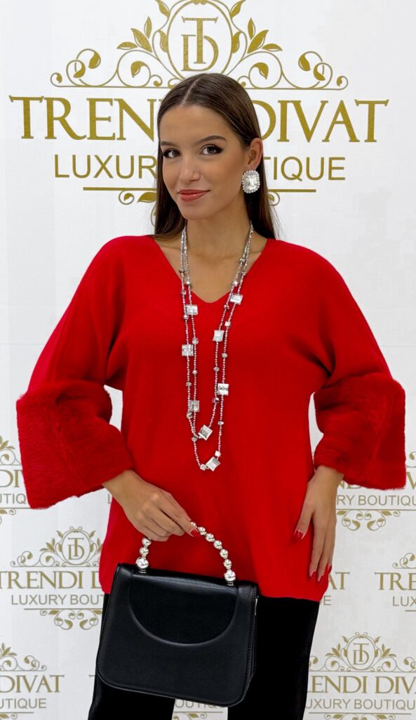Be the first to review “V-neck top with fur sleeves and soft knit fabric”