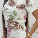 Be the first to review “Women’s dress with a flower pattern, drawn at the waist, decorated with golden jewels, made of elastic material”