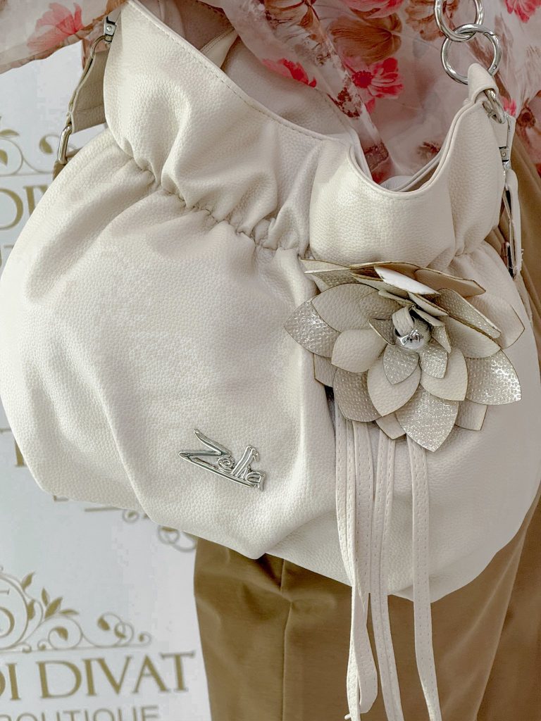 Zellia, bag in a drawn style, with large flower decoration