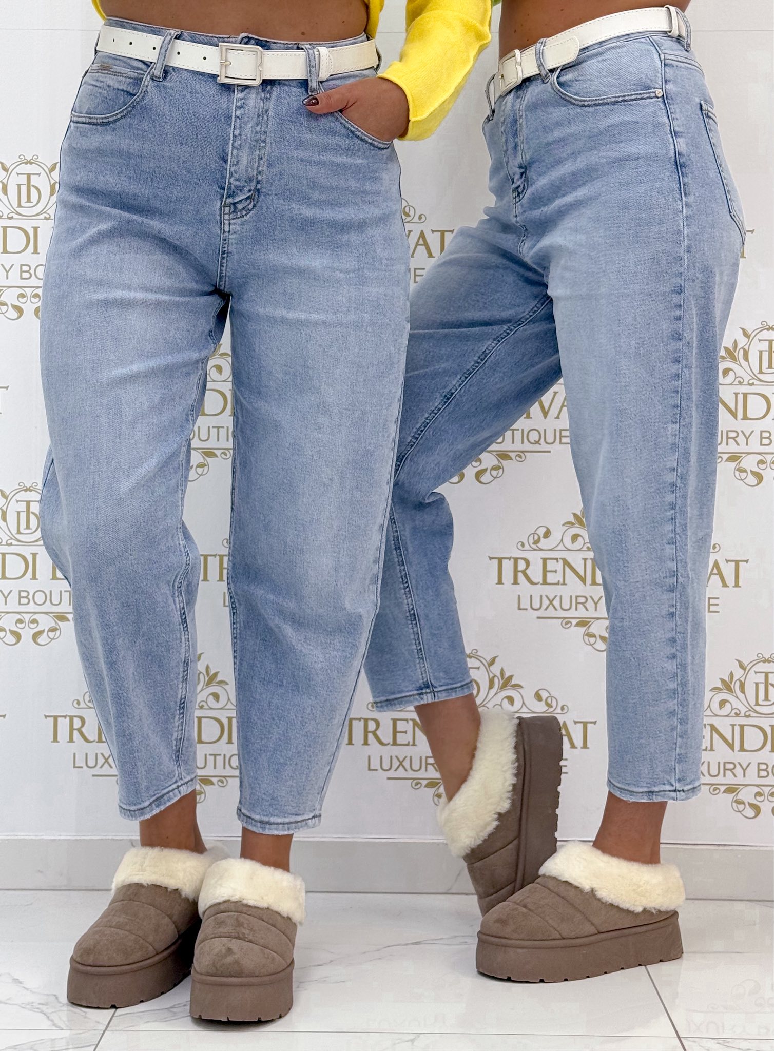 High Waist Distressed “Mom Jeans” Jeans, Bag With Decorative Belt “SK382-6”