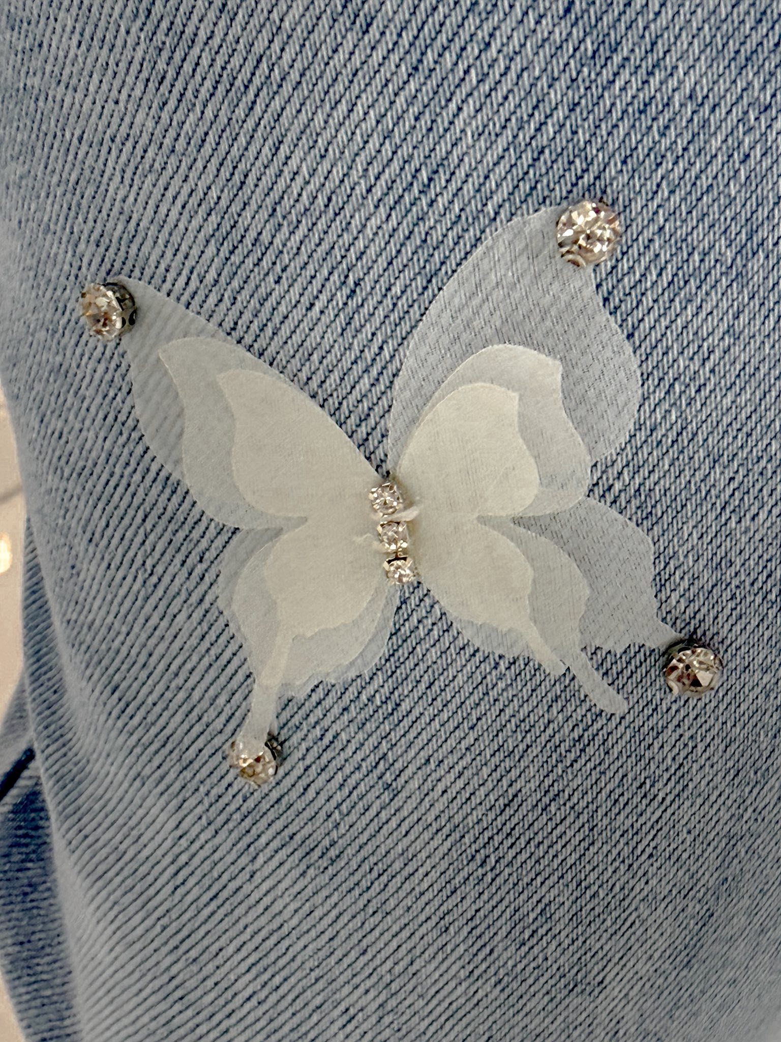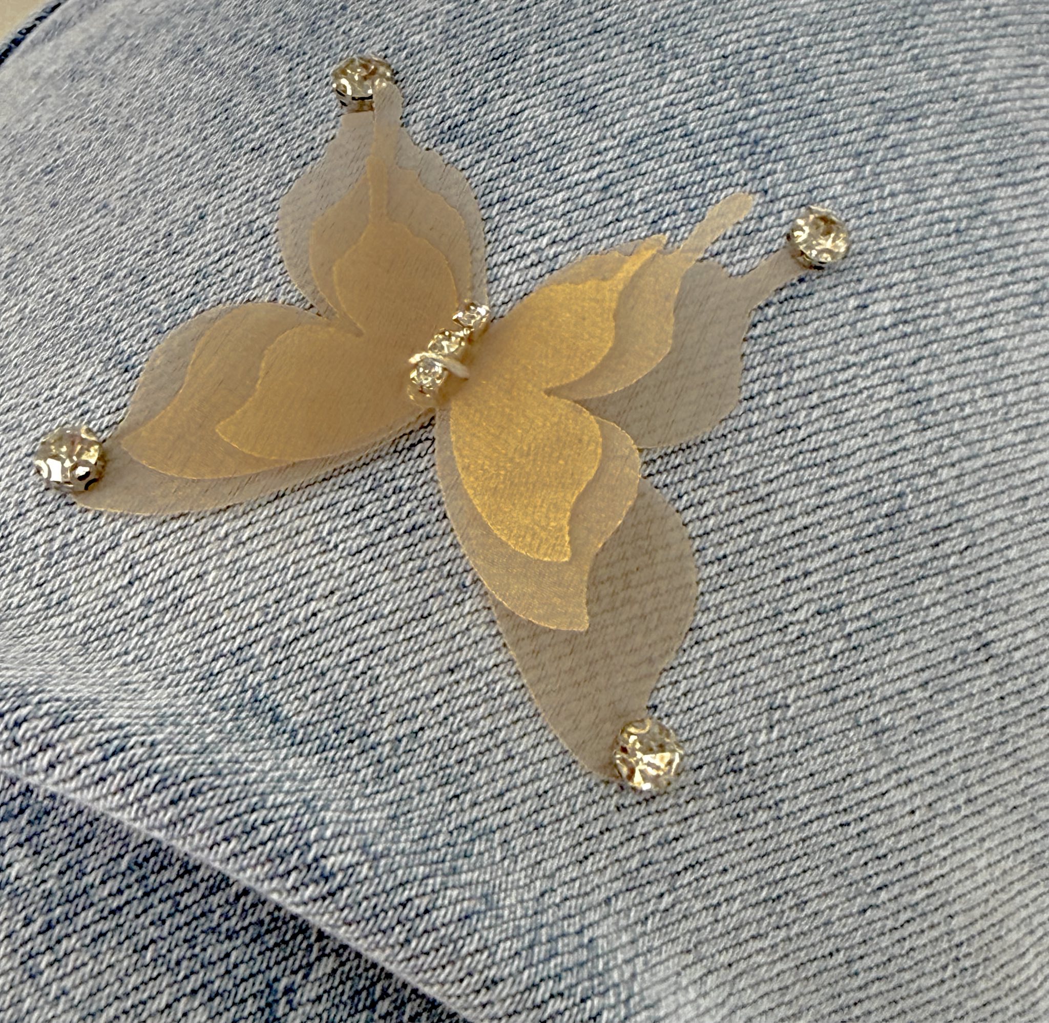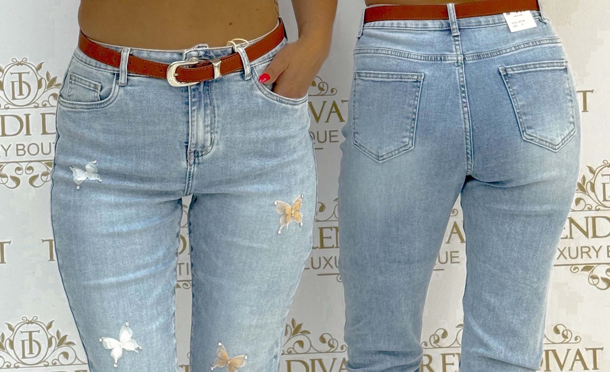 3D pillangó mintás, strasszos női farmernadrág, ajándék övvel “BF5199”