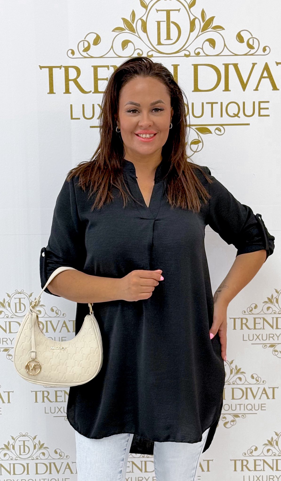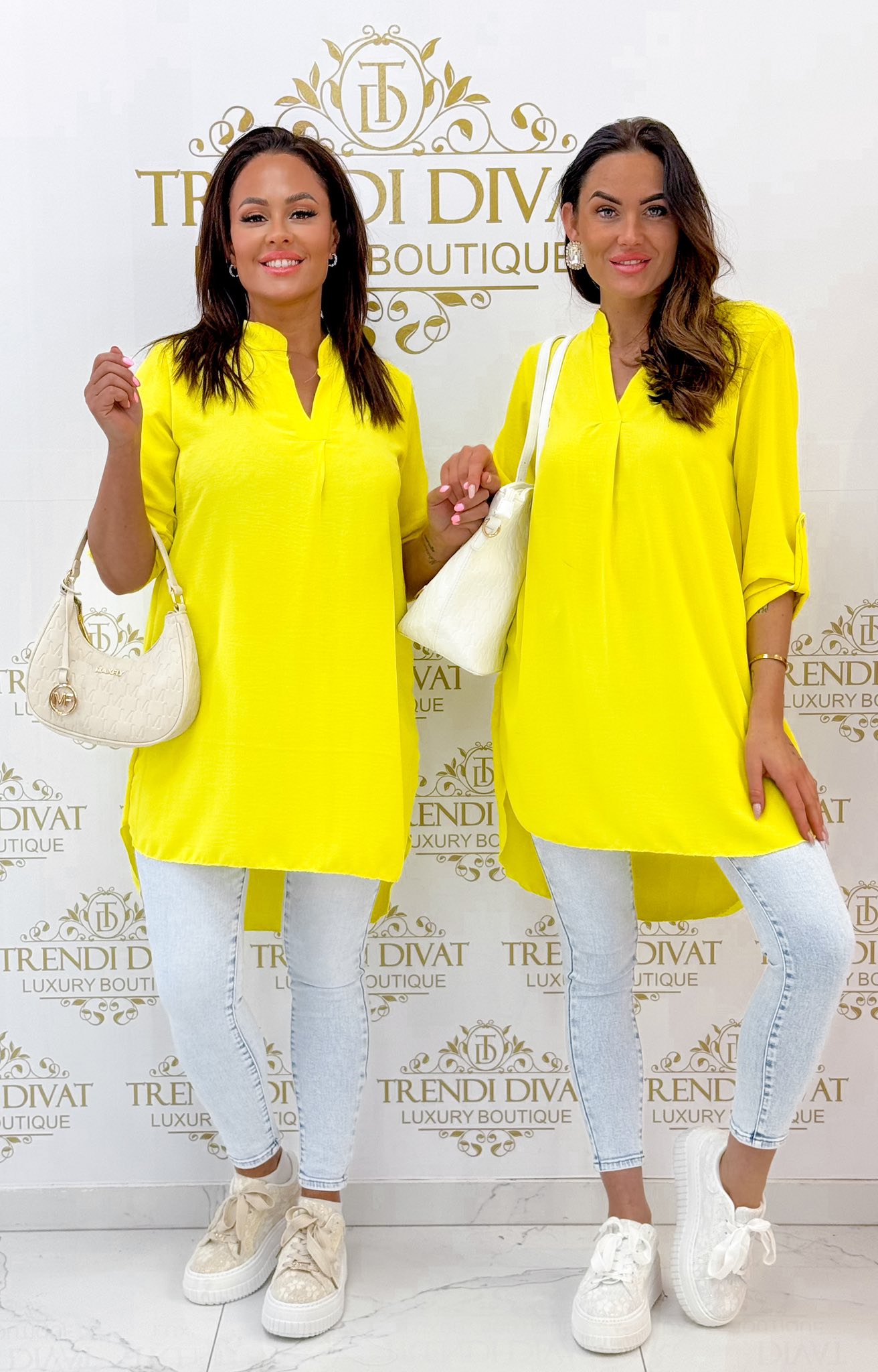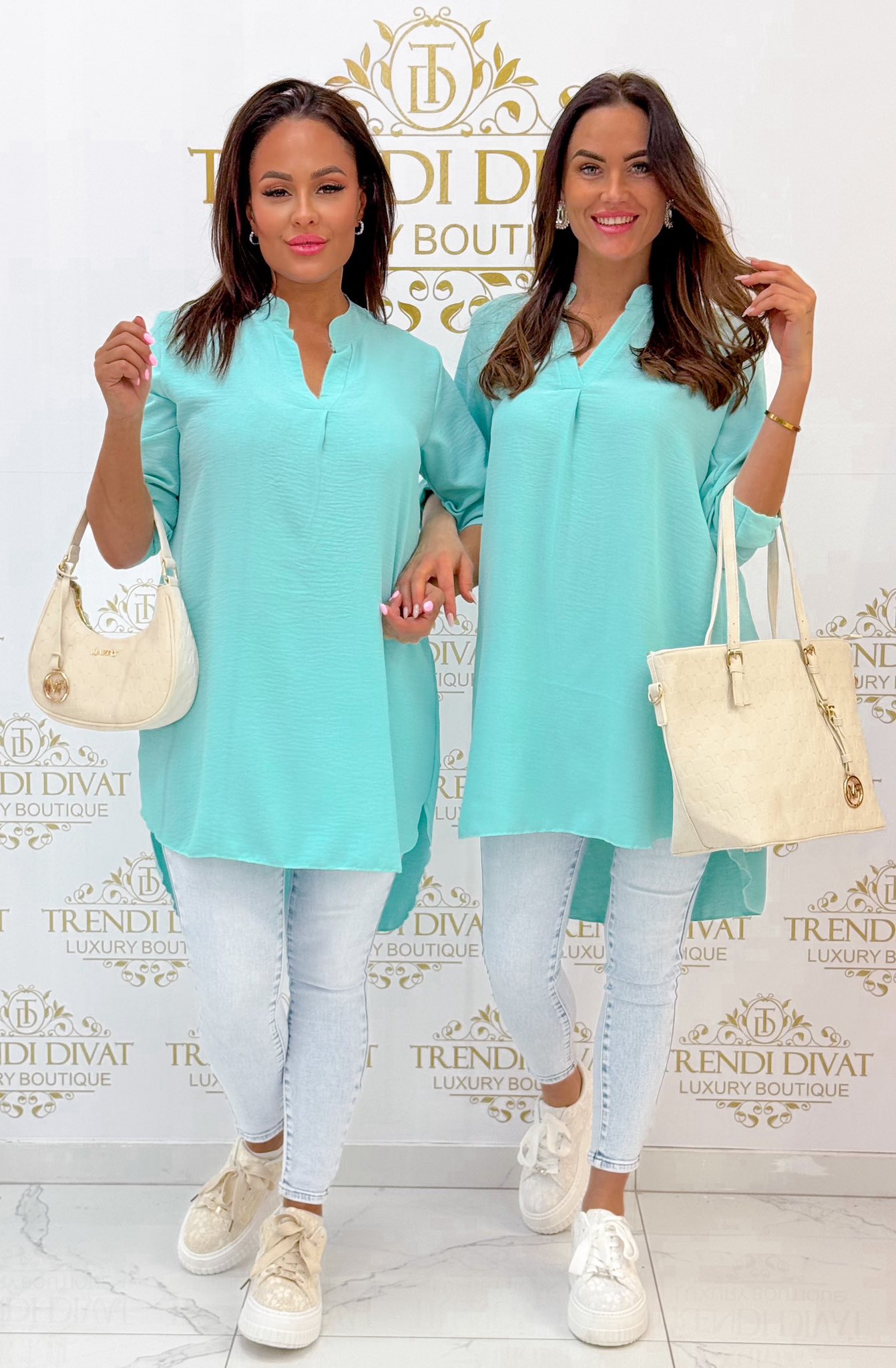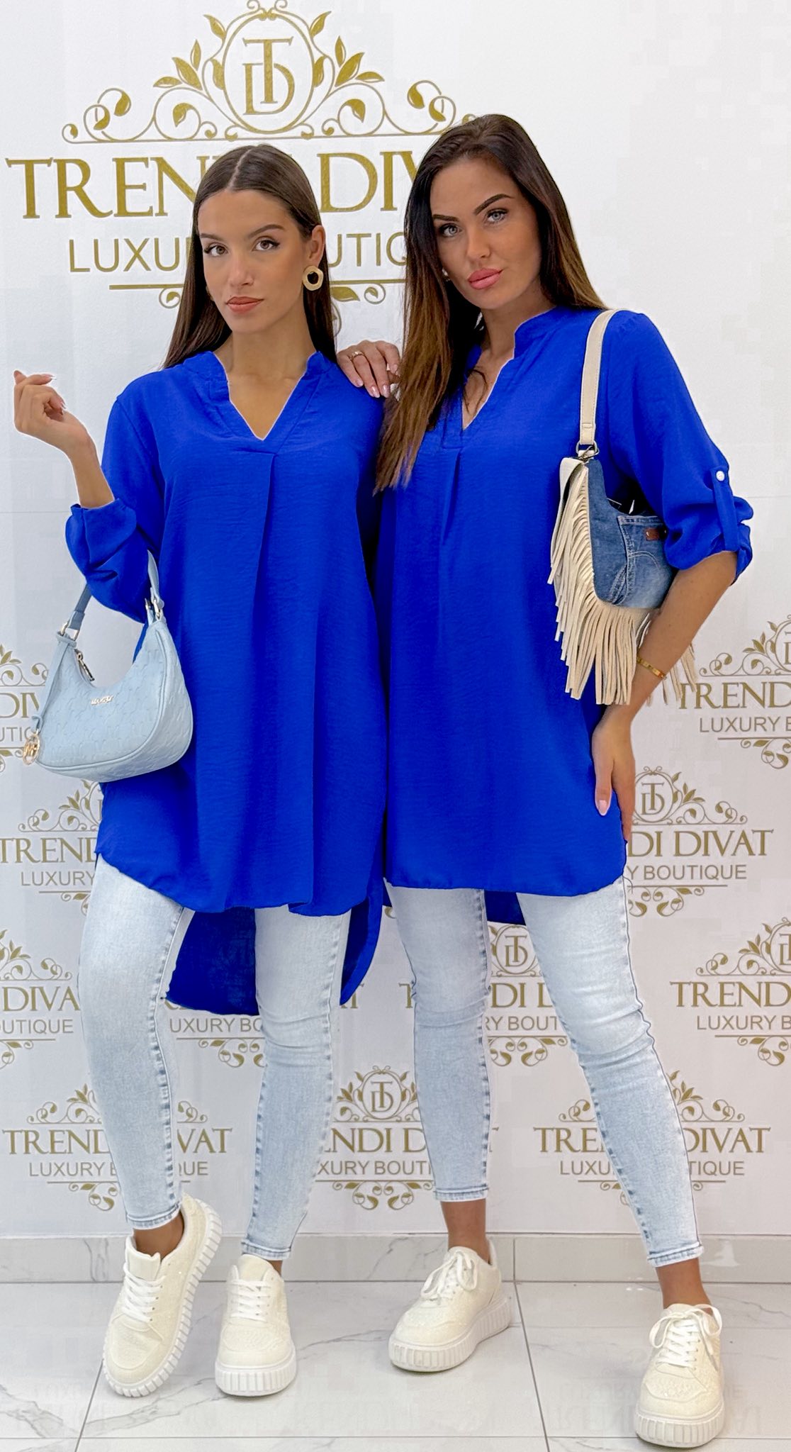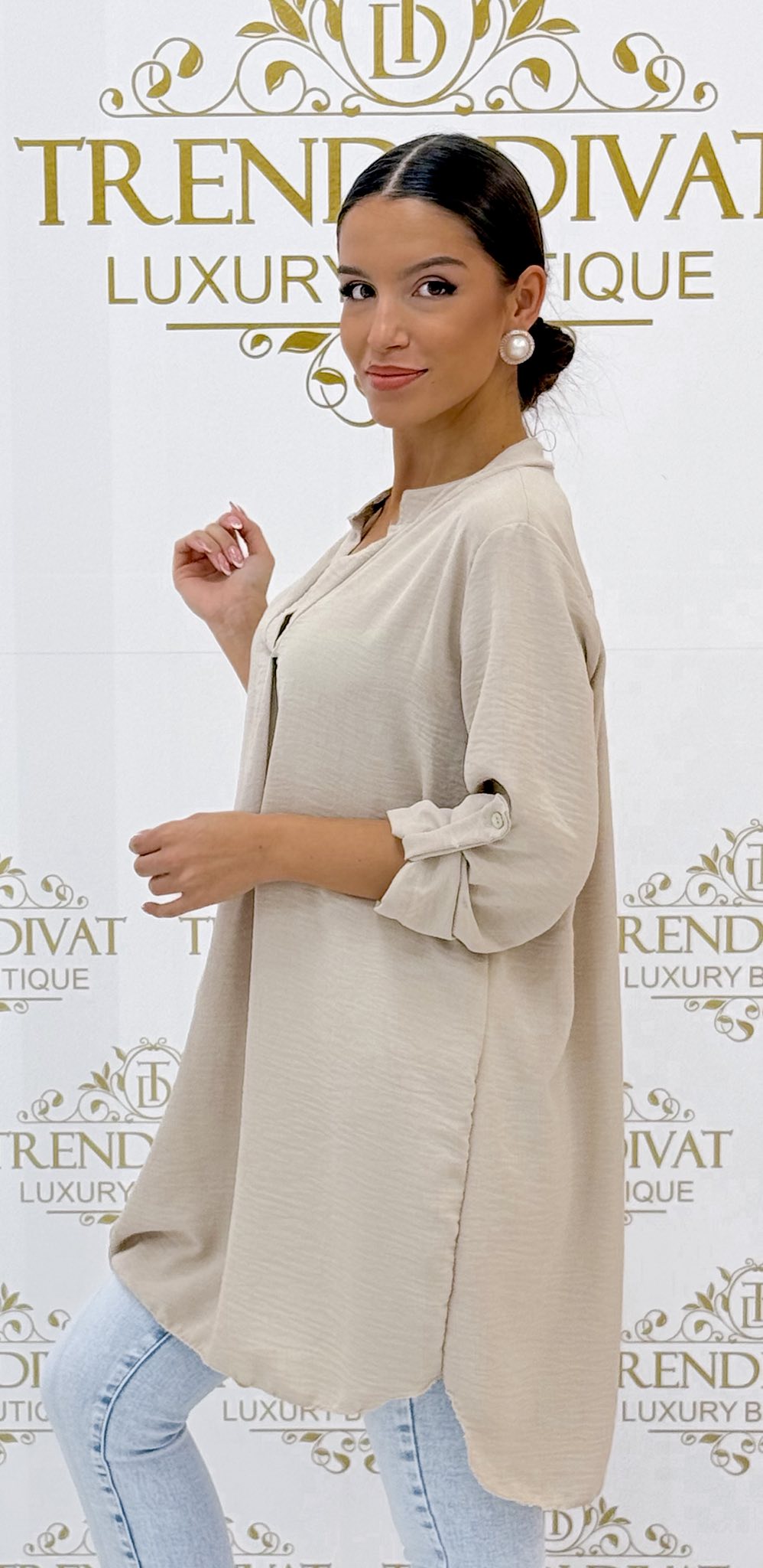 Álló galléros, elől rövidebb fazonú, lenge anyagú ing tunika