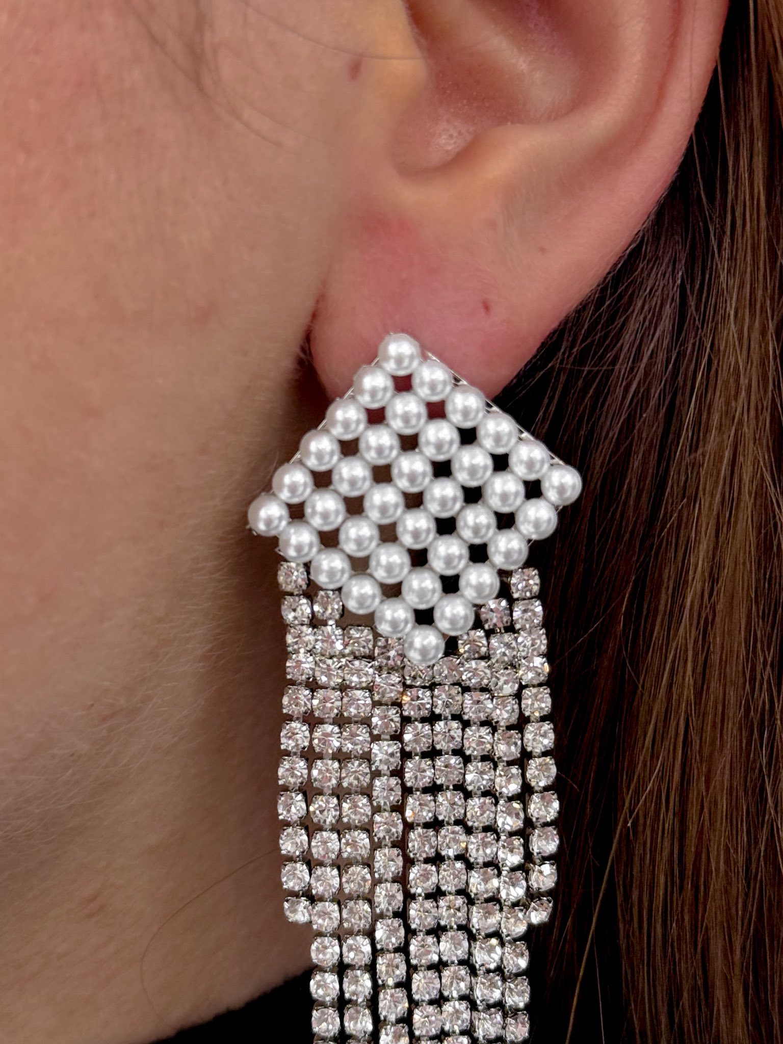 Apró gyöngyökkel díszített, köves lógós fülbevaló
