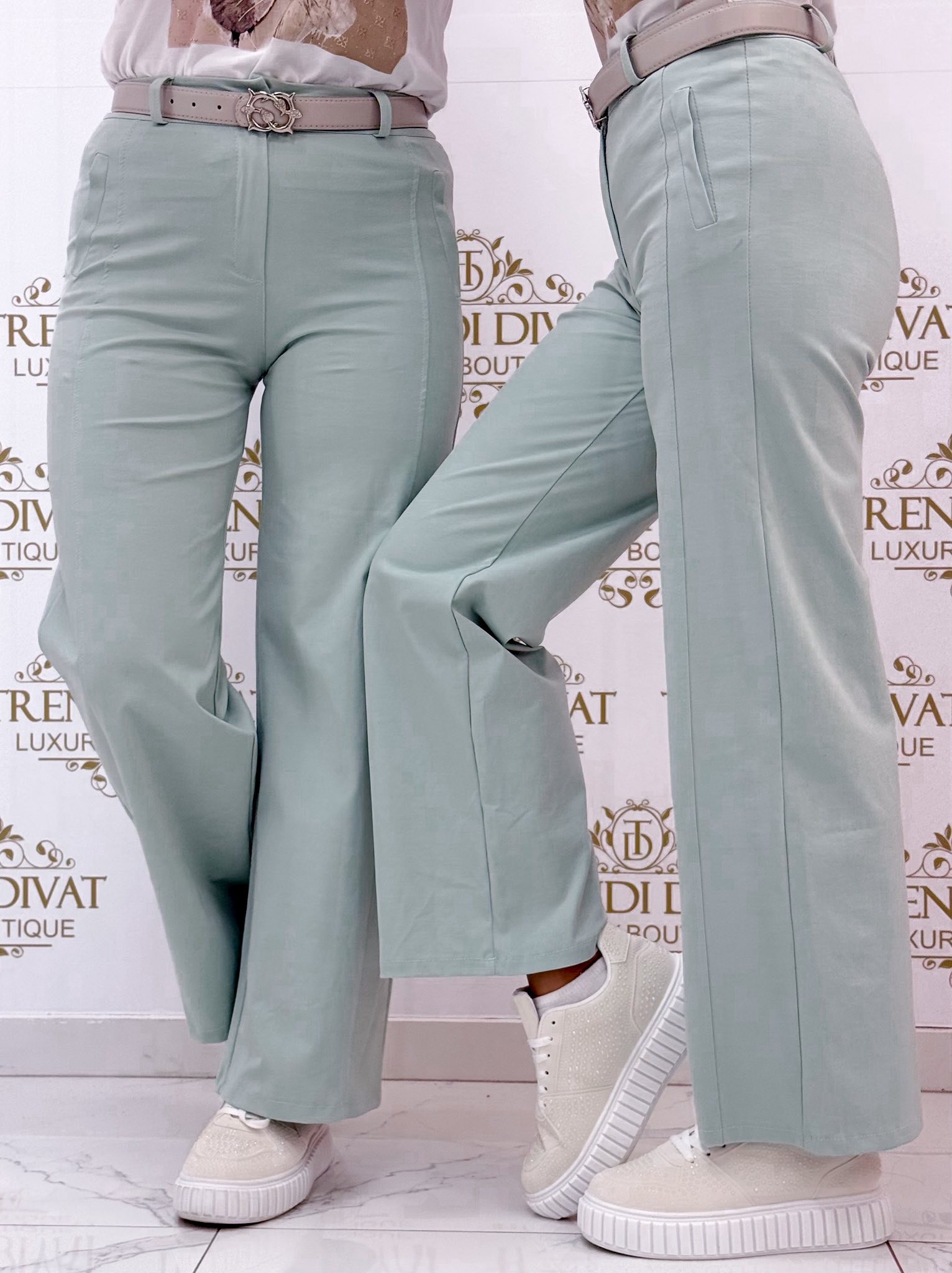 Élén varrott, középmagas derekú palazzo nadrág, ajándék övvel