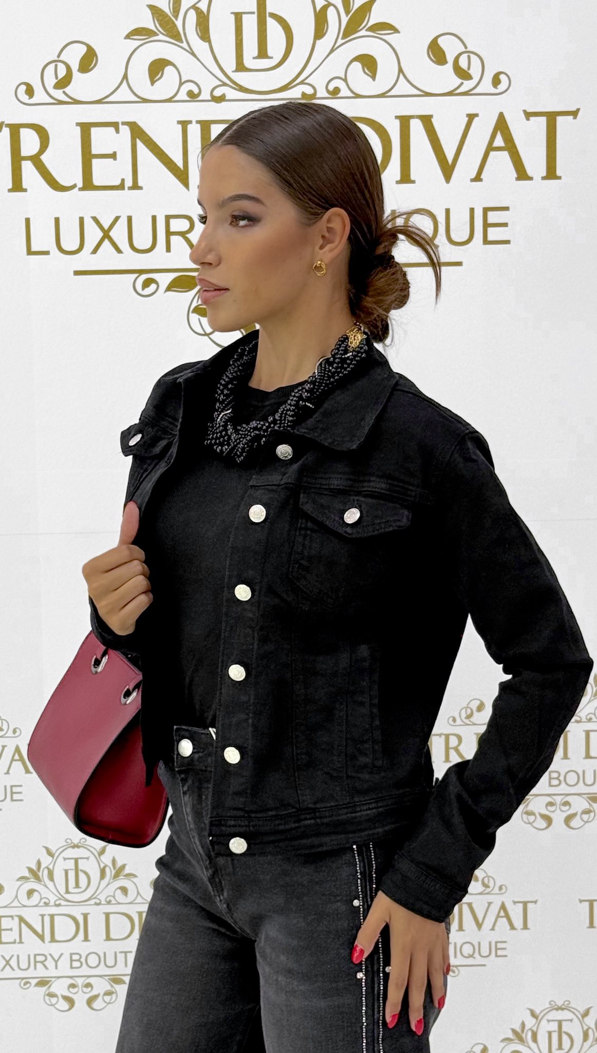 Galléros, fekete színű farmer kabát “A2210-13”