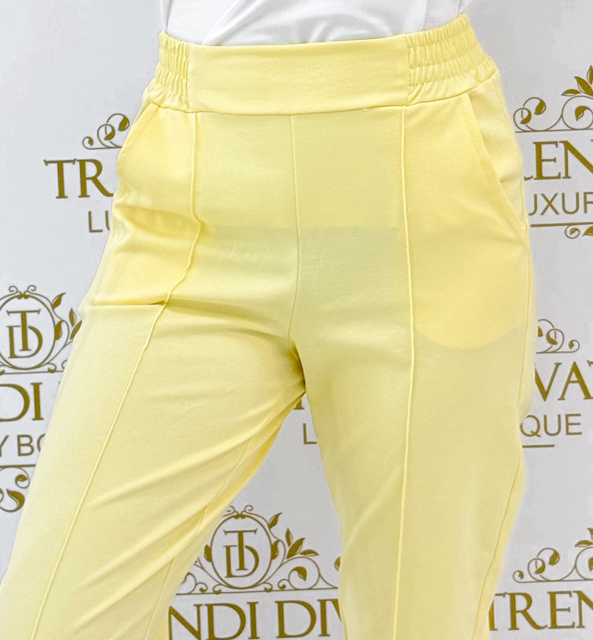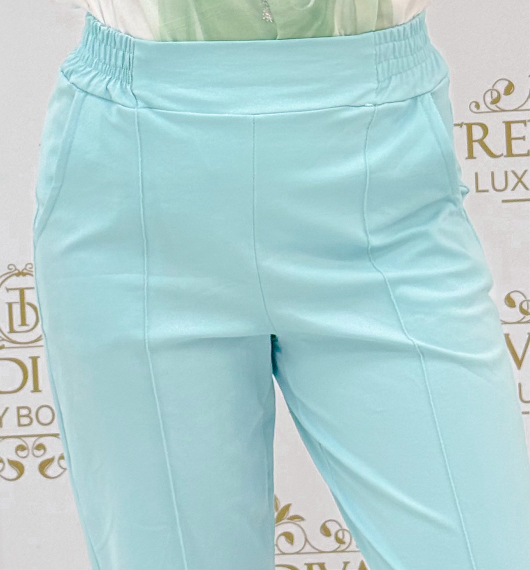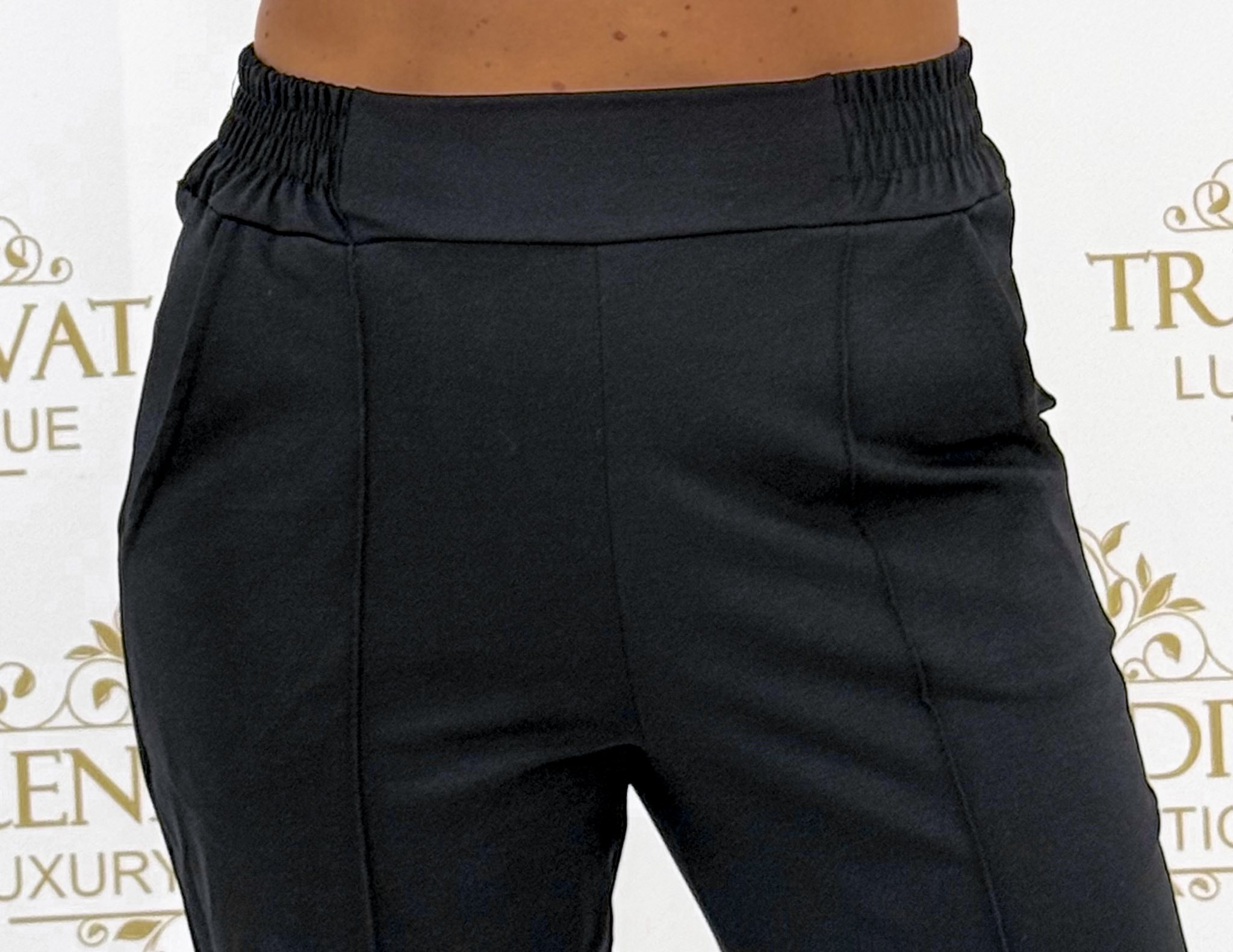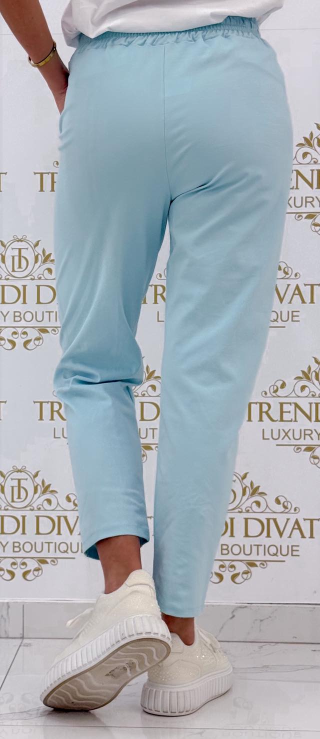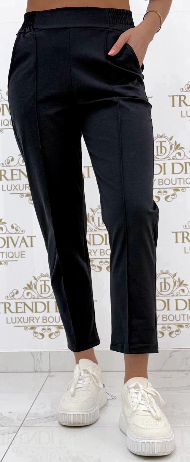 Gumis derekú, élén varrott, elasztikus vászon anyagú nadrág