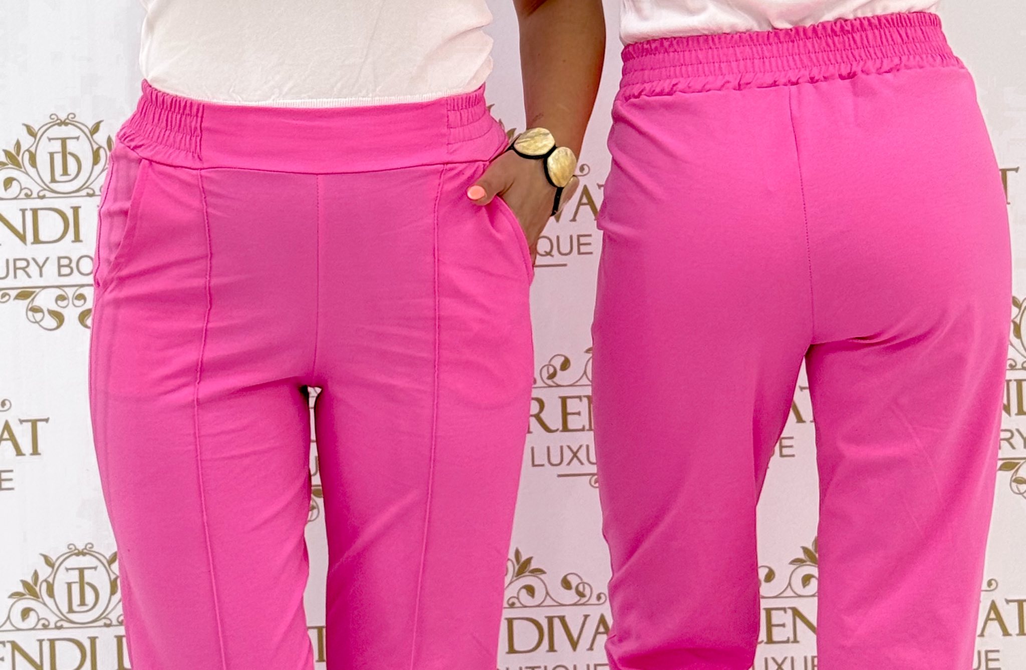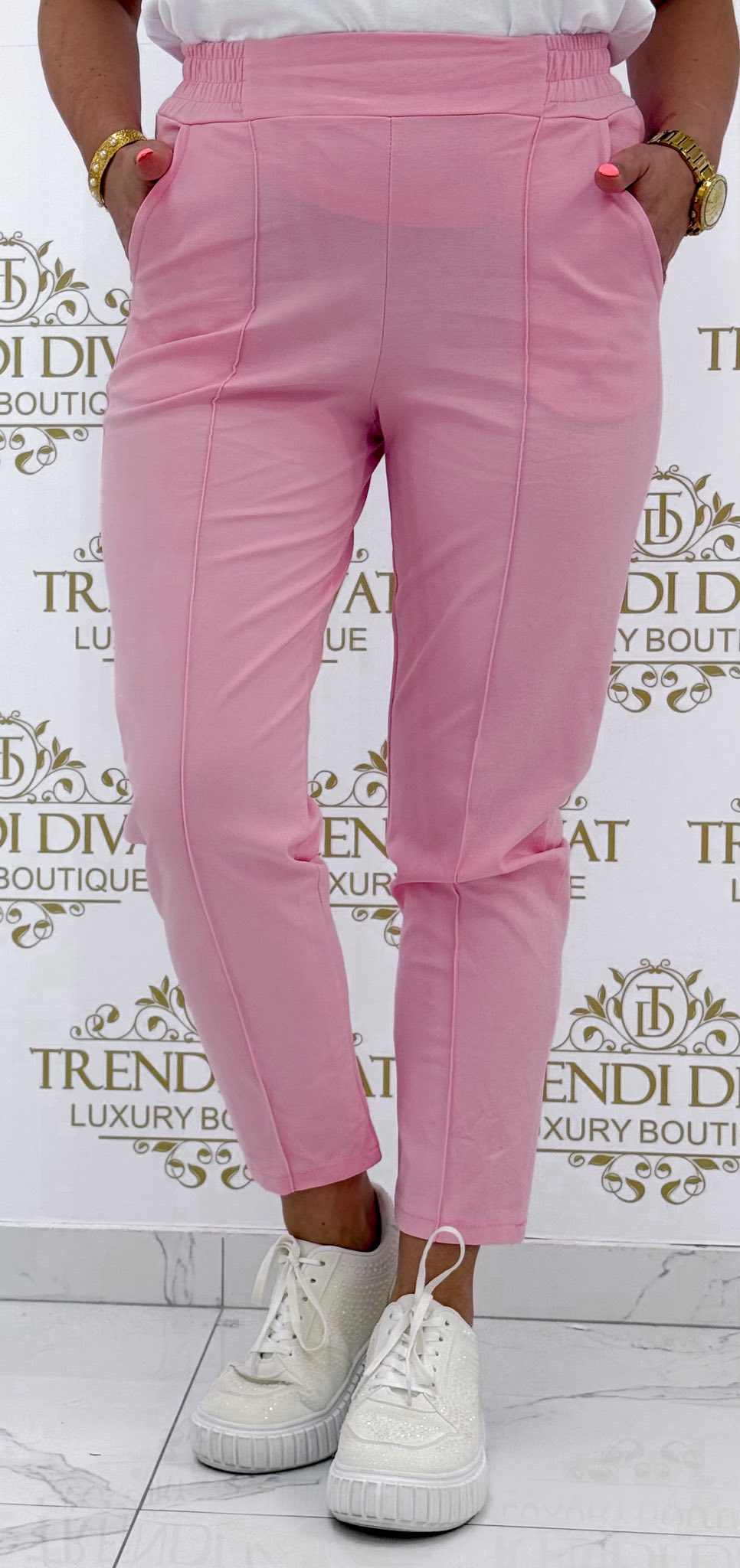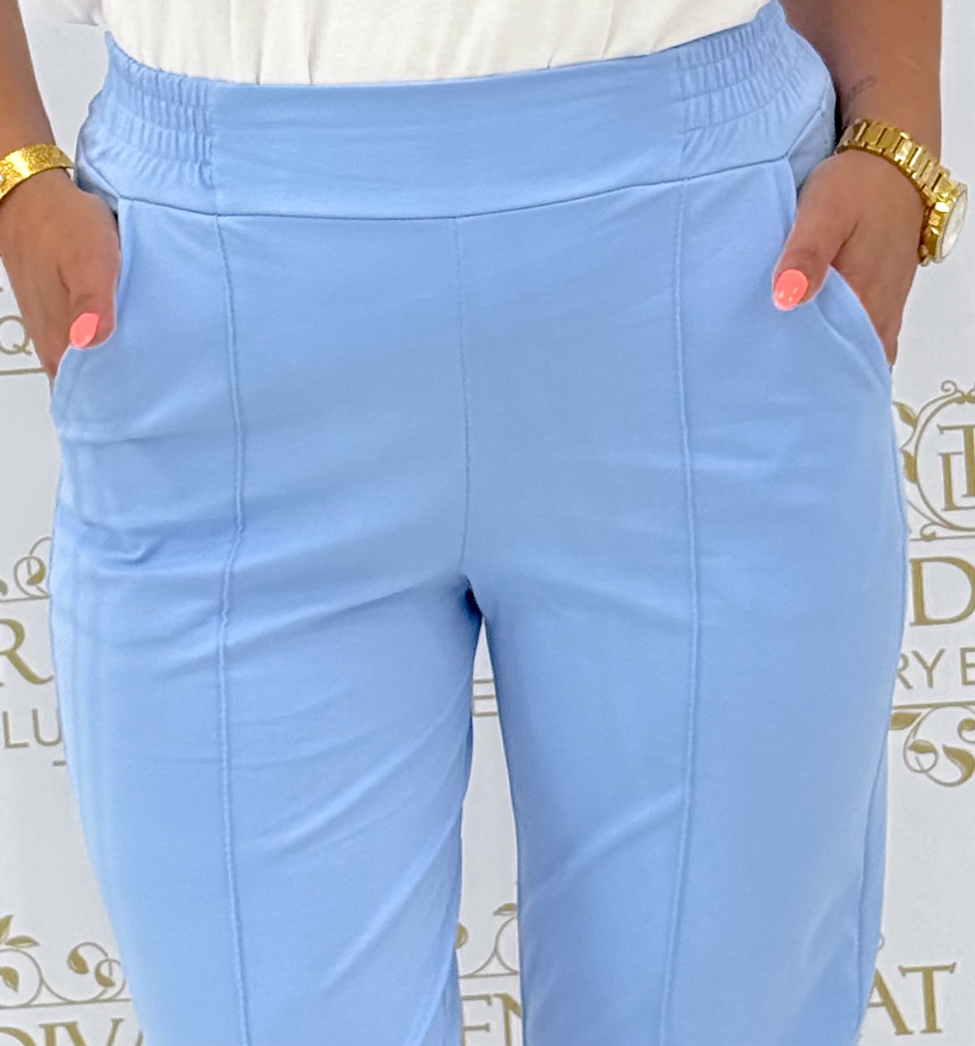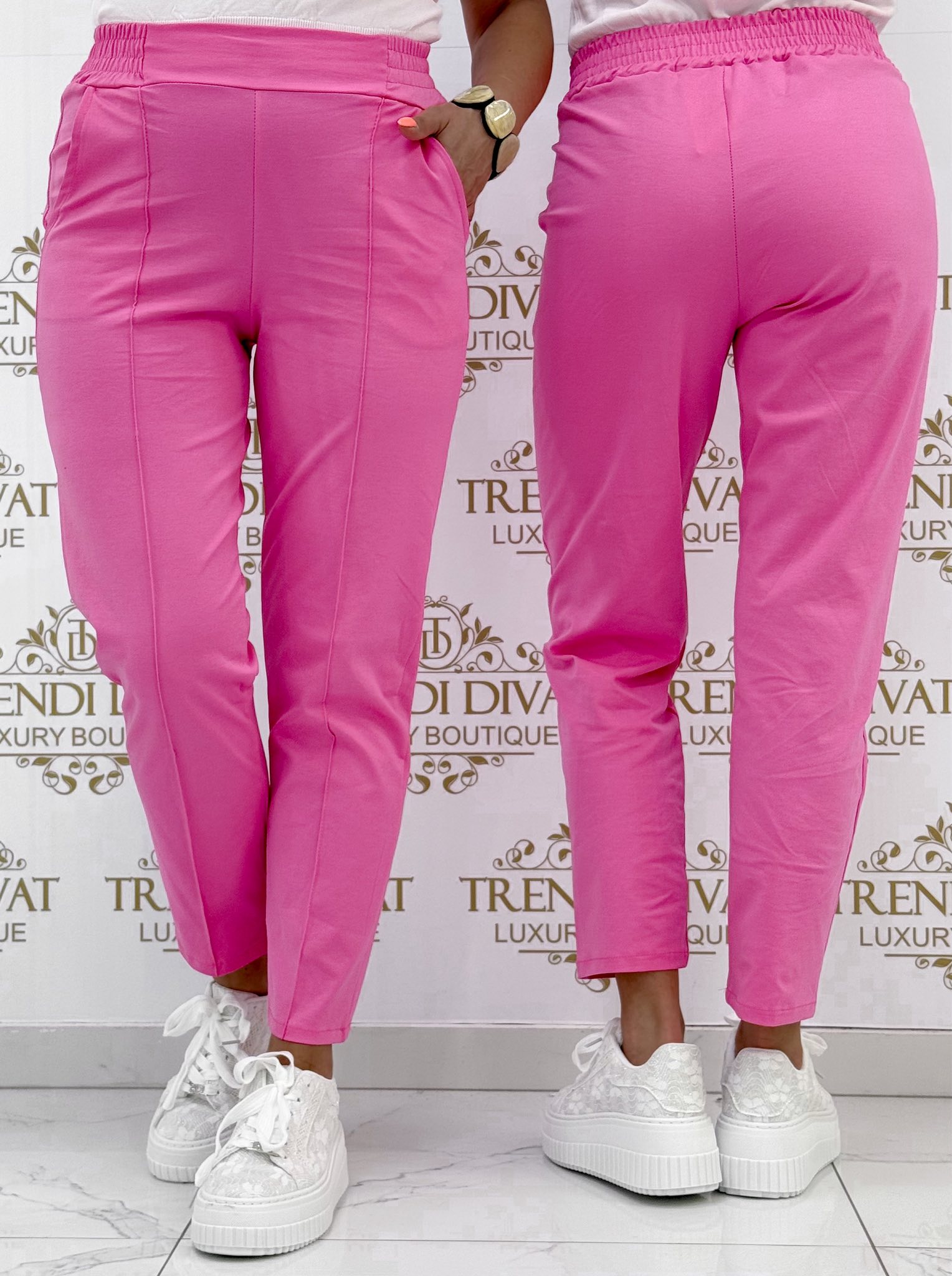 Gumis derekú, élén varrott, elasztikus vászon anyagú nadrág