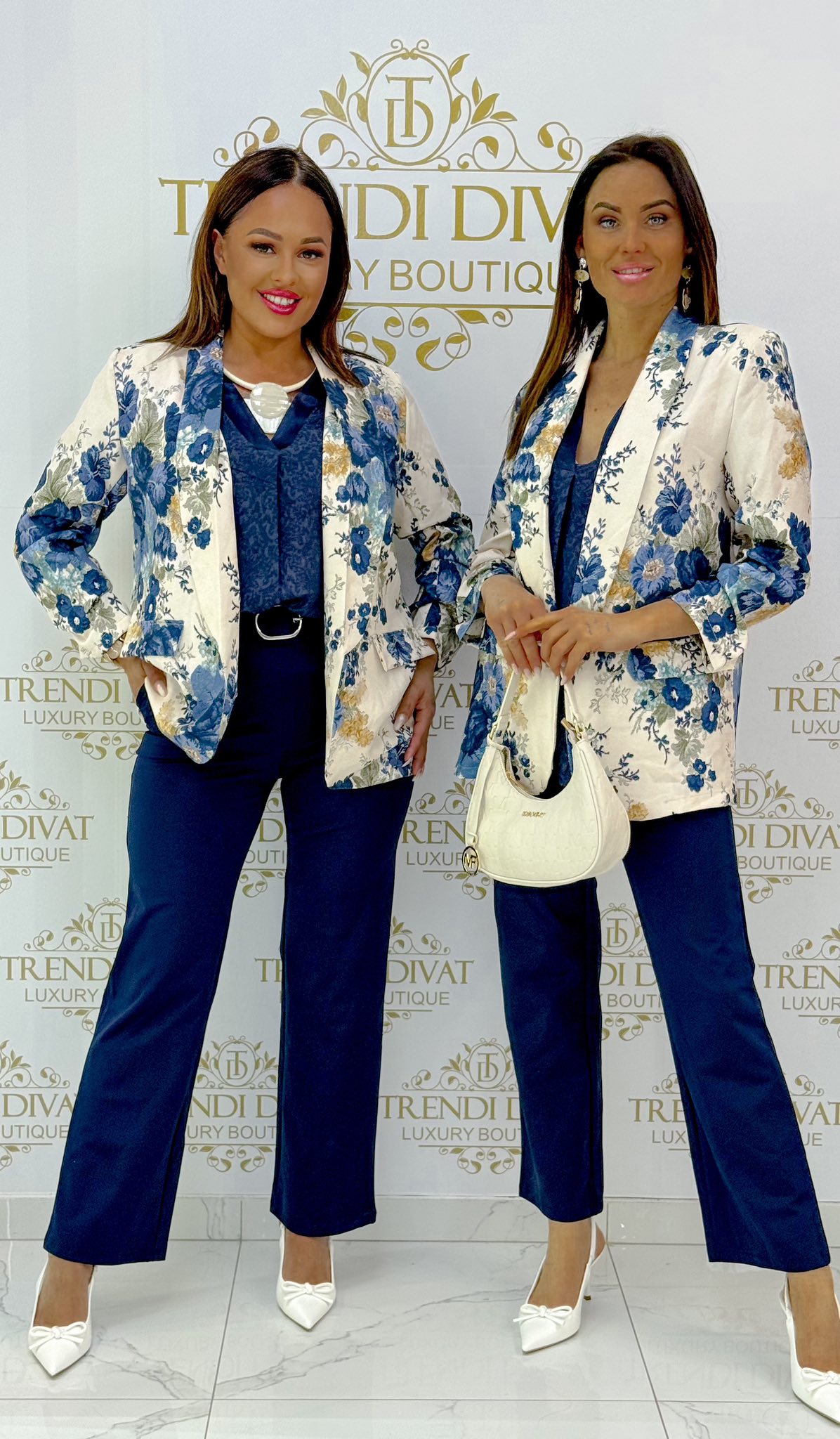 Kék virágmintás női blézer